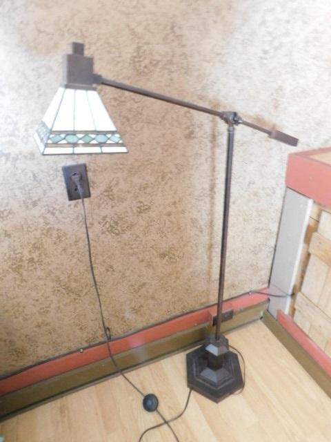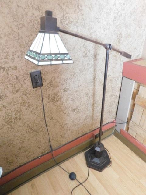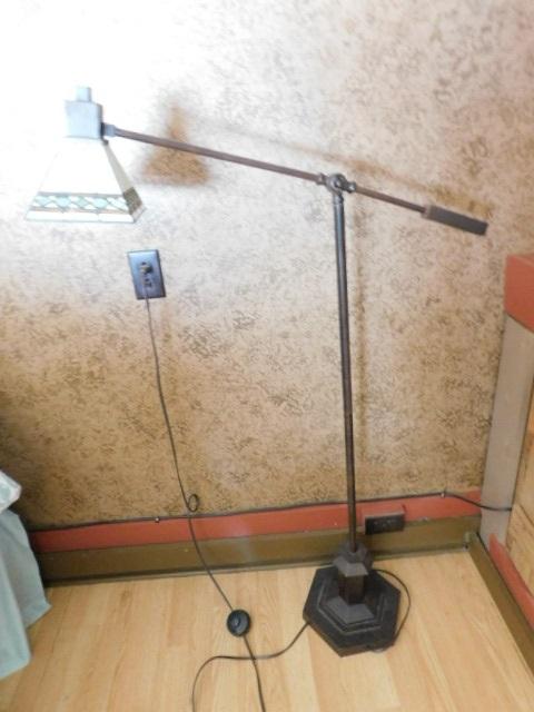 Nice Art Deco Shade Floor Lamp with Antique Brass Finish Post