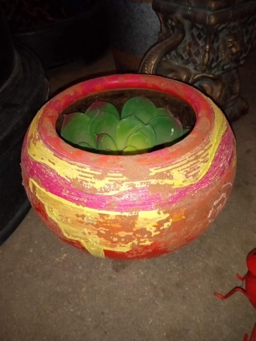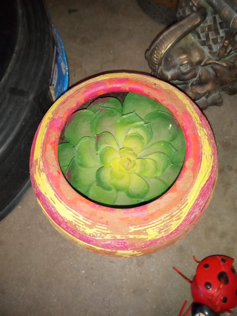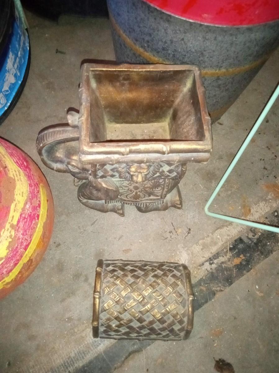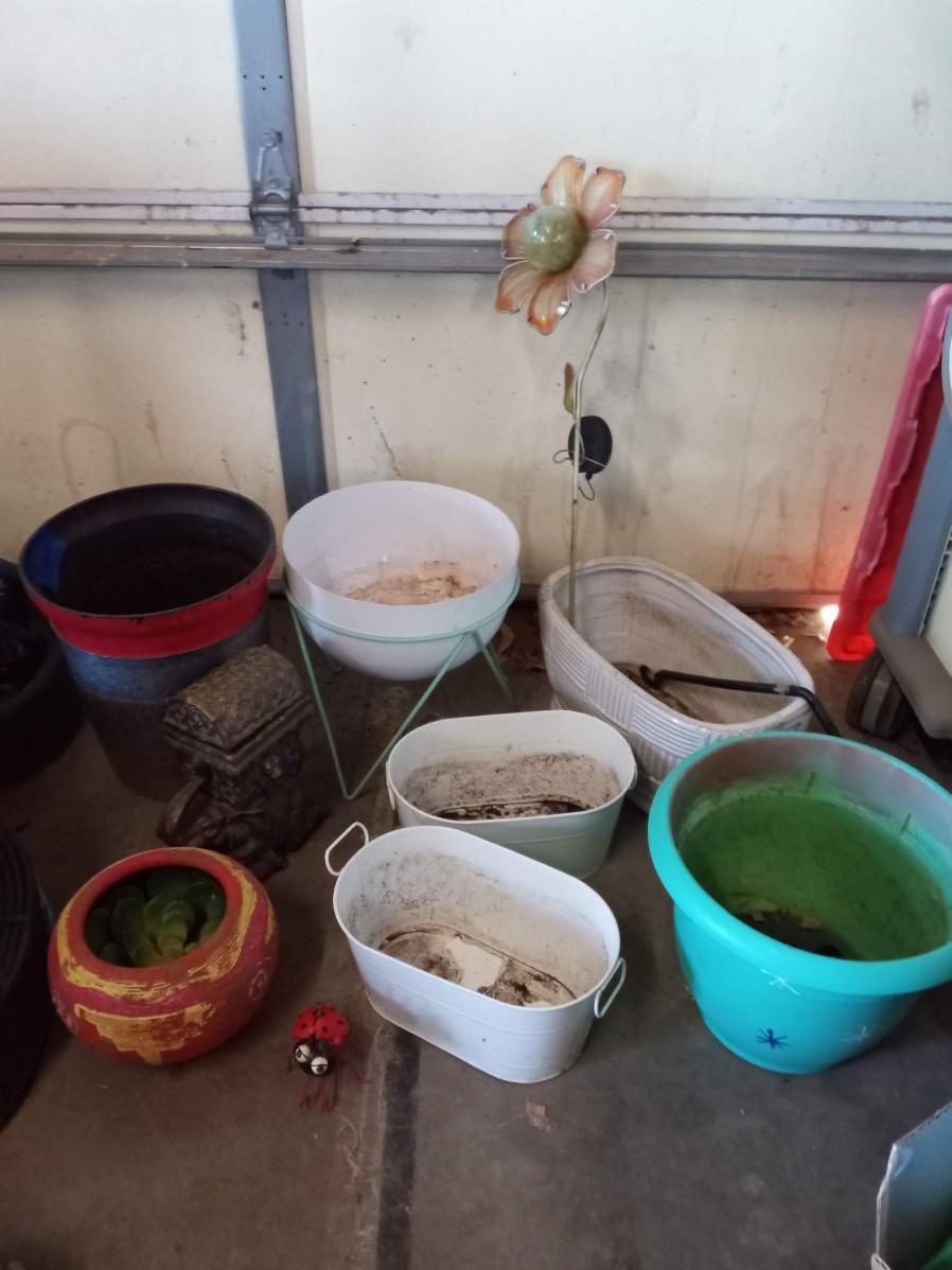 NICE ASSORTMENT OF FLOWER POTS, SOLAR FLOWER AND ELEPHANT CONTAINER