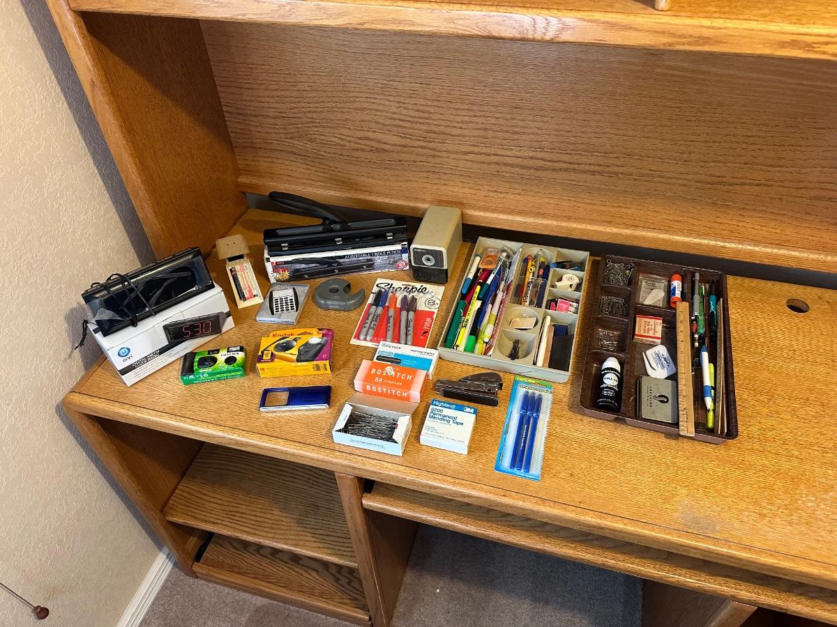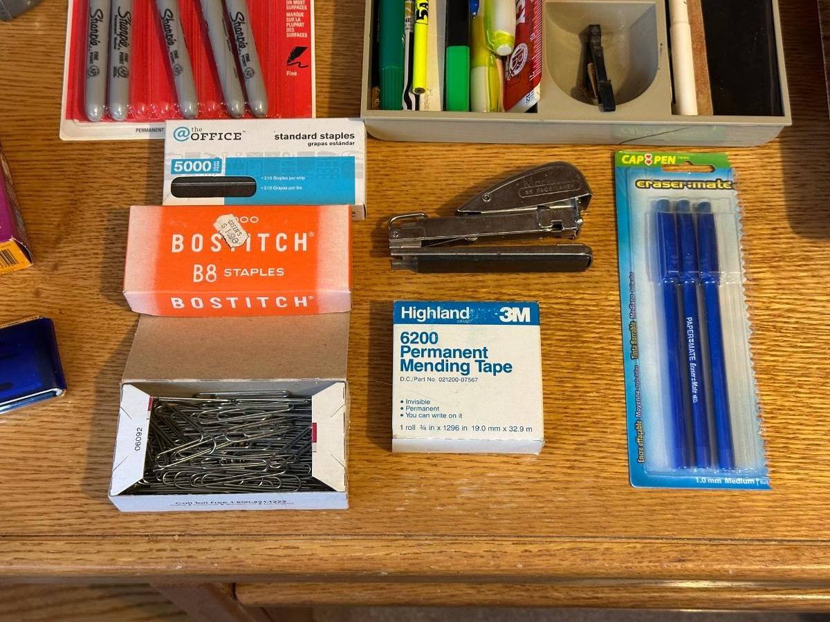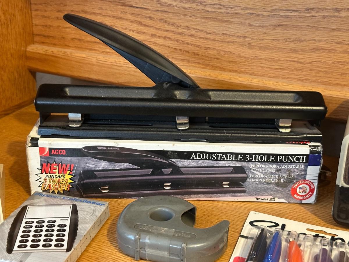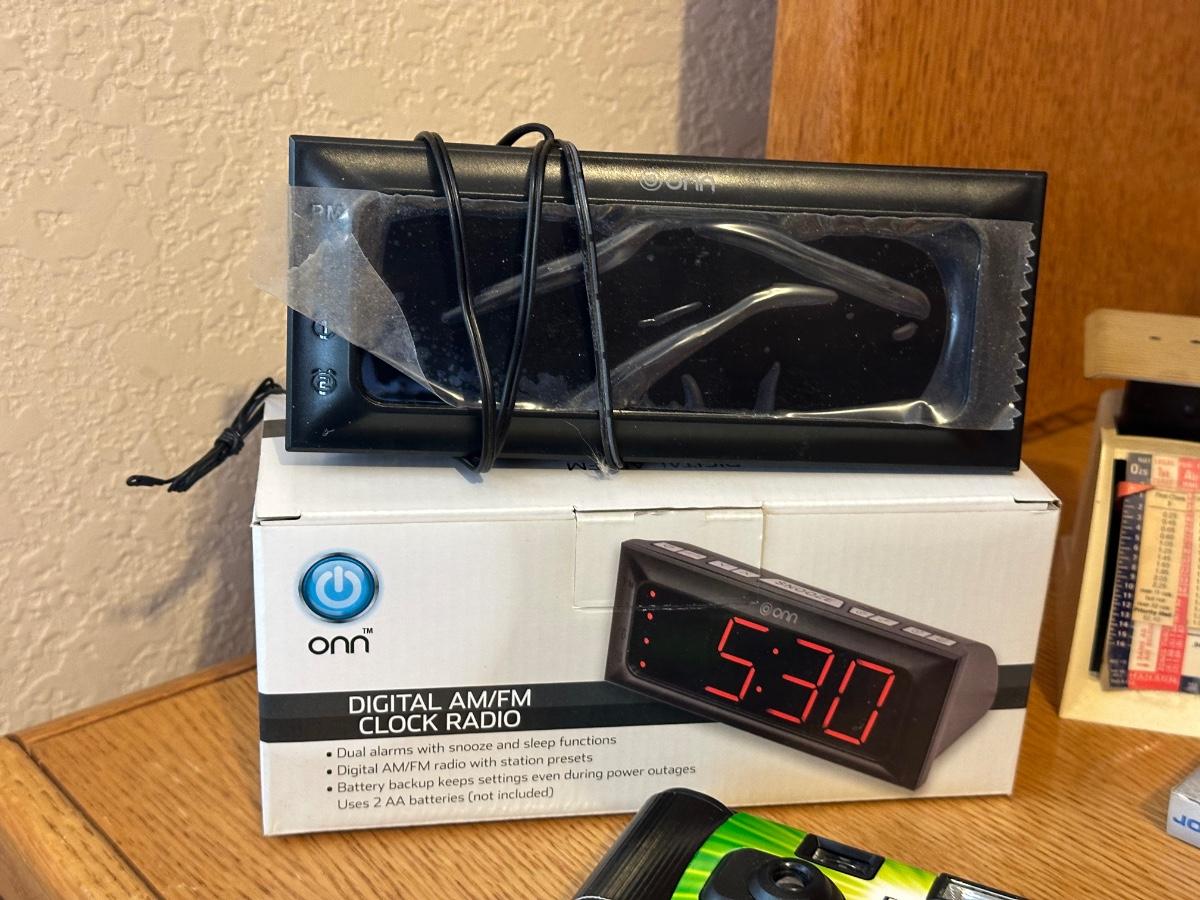 NEW DIGITAL AM/FM ALARM CLOCK, ELECTRIC PENCIL SHARPENER AND OFFICE SUPPLIES