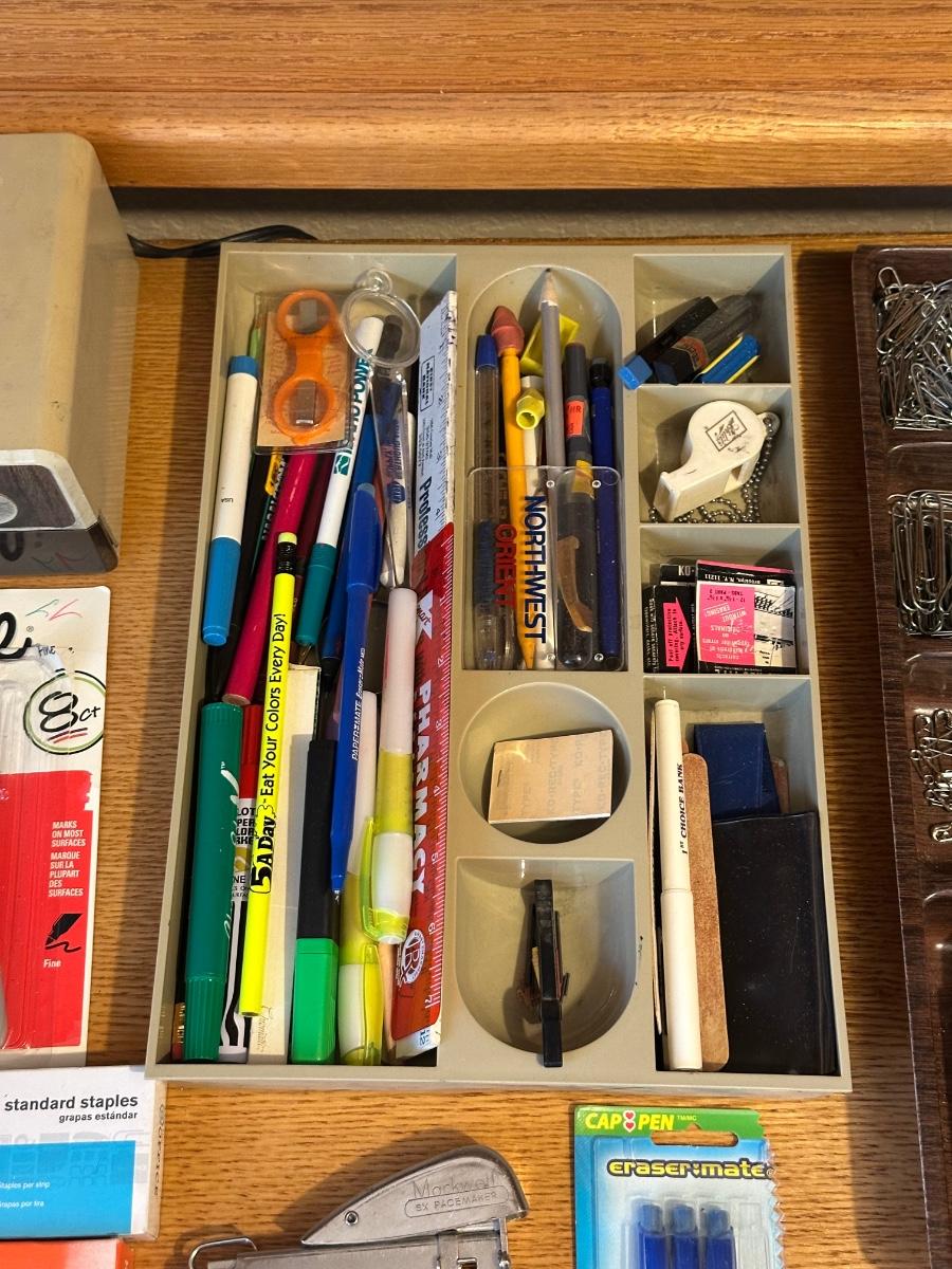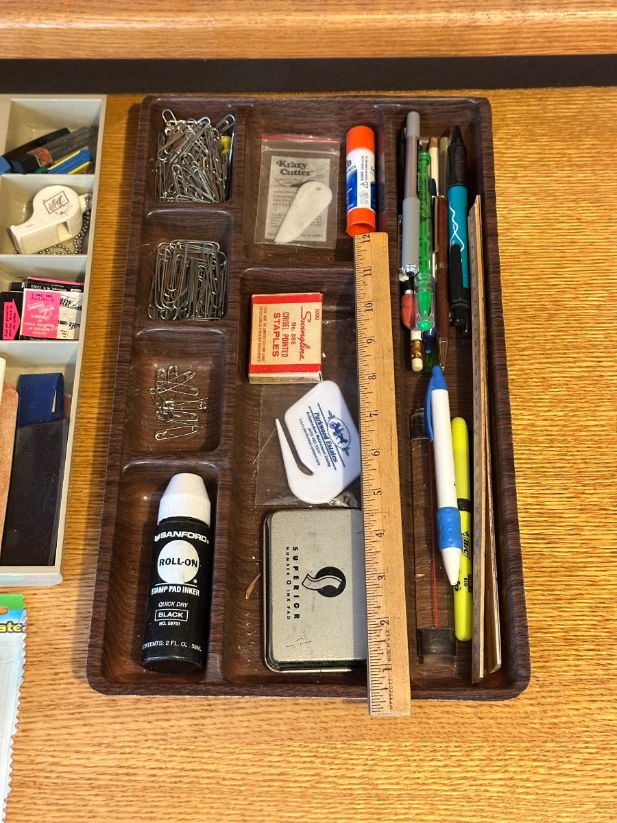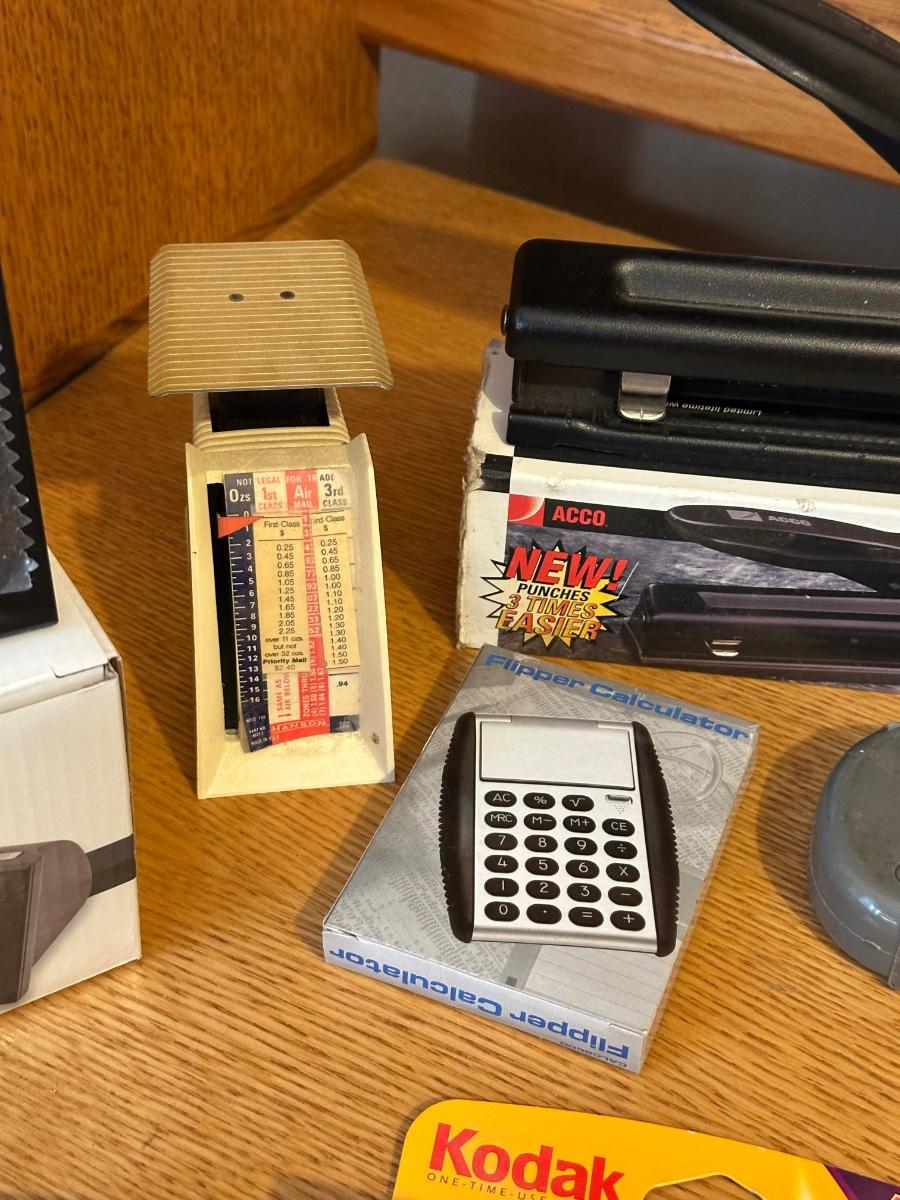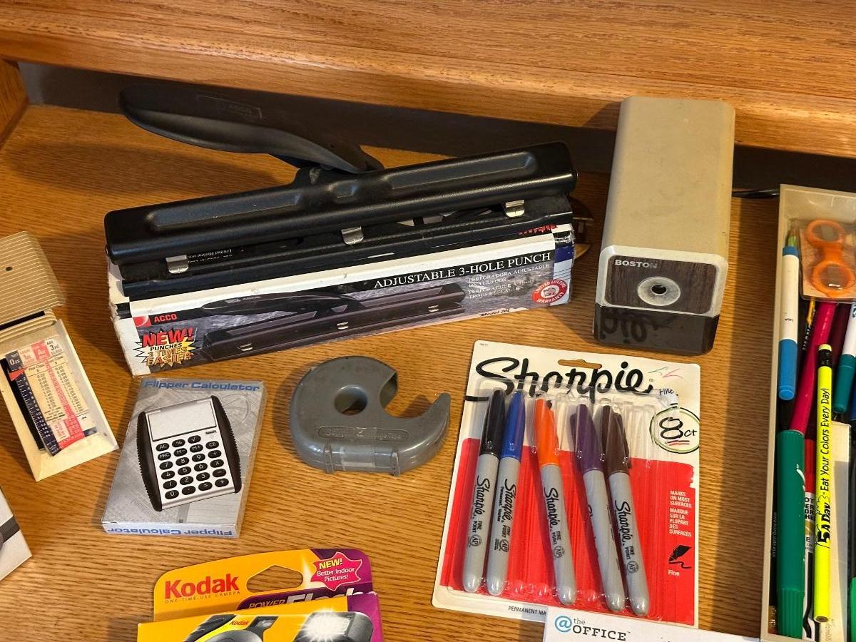 NEW DIGITAL AM/FM ALARM CLOCK, ELECTRIC PENCIL SHARPENER AND OFFICE SUPPLIES