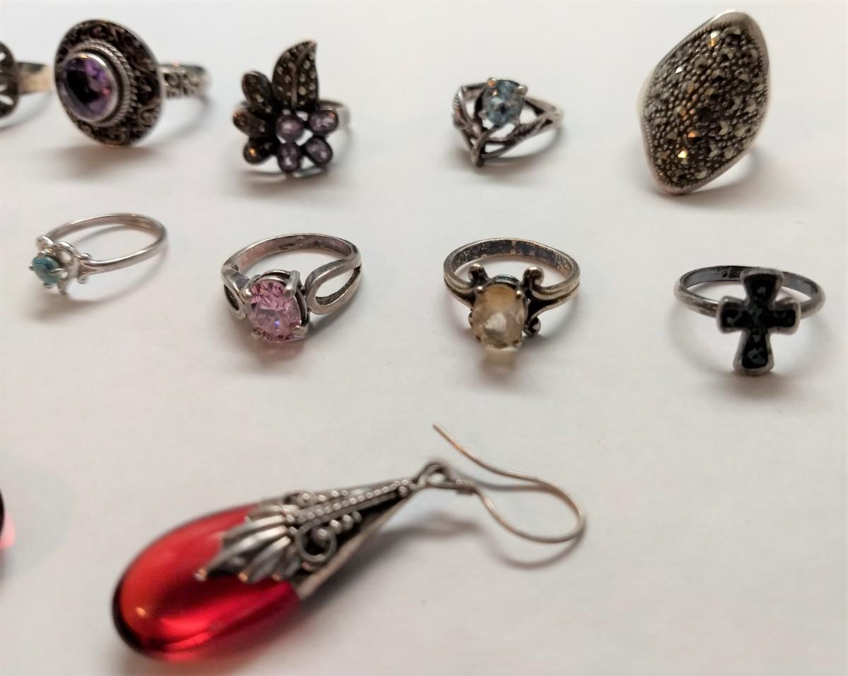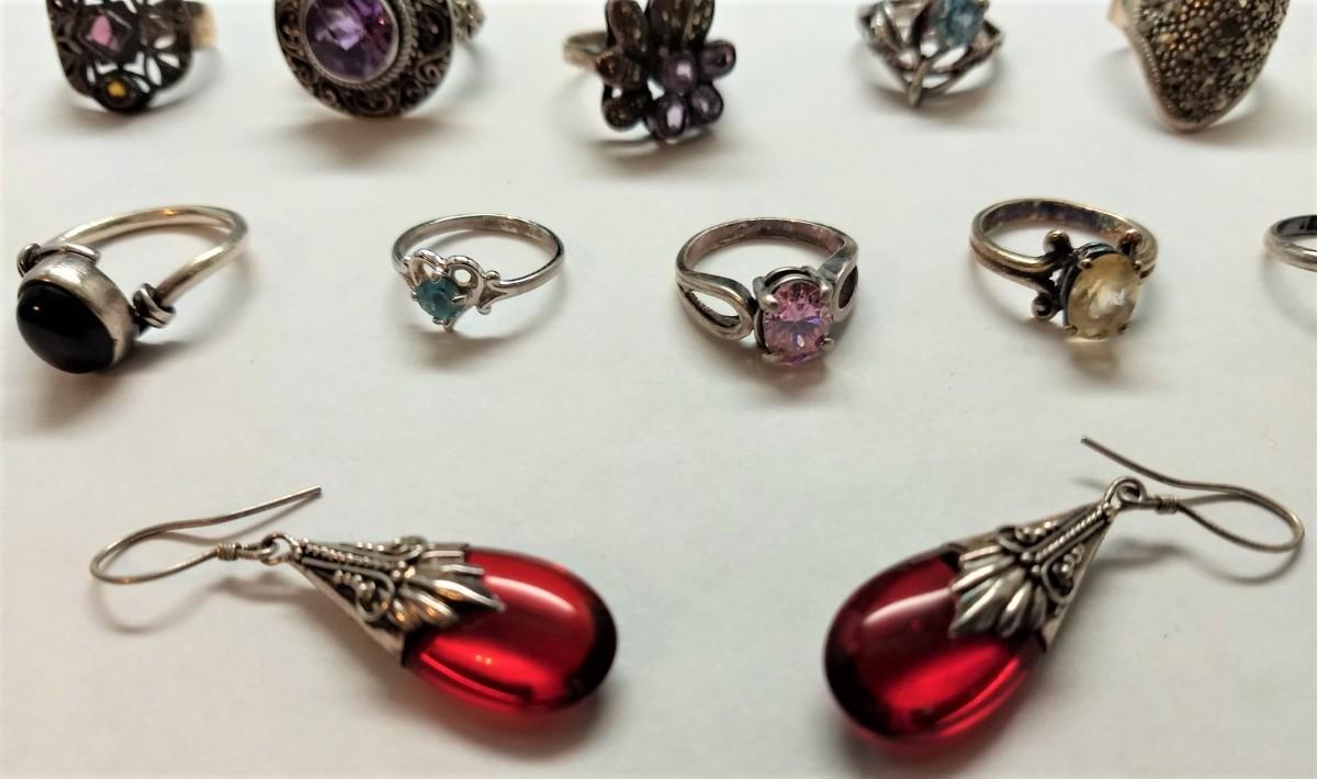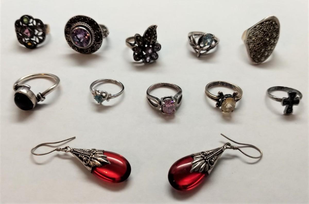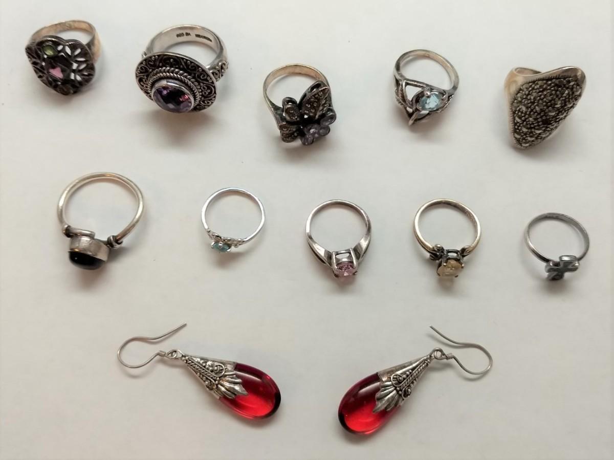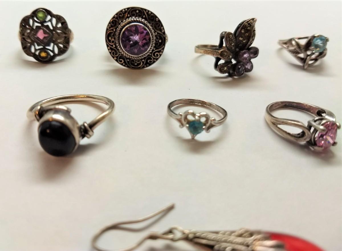 Nice Assortment of Vintage Sterling .925 and Unmarked Gemstone Rings Various Sizes