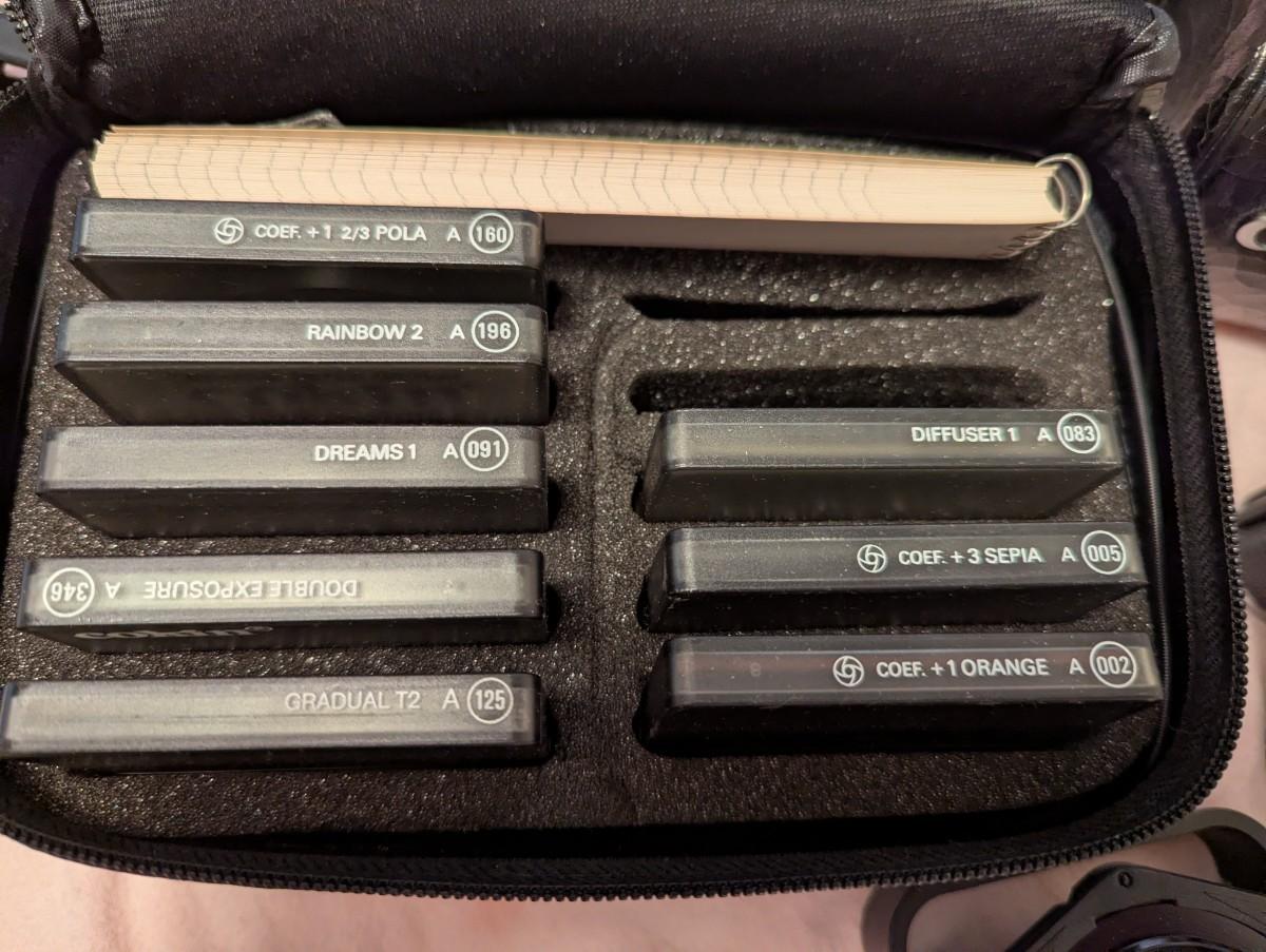 Cannon AE 1 film camera with an extra lens, and filters, along with tripod.