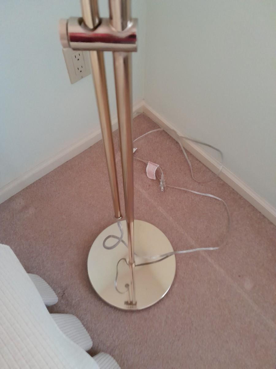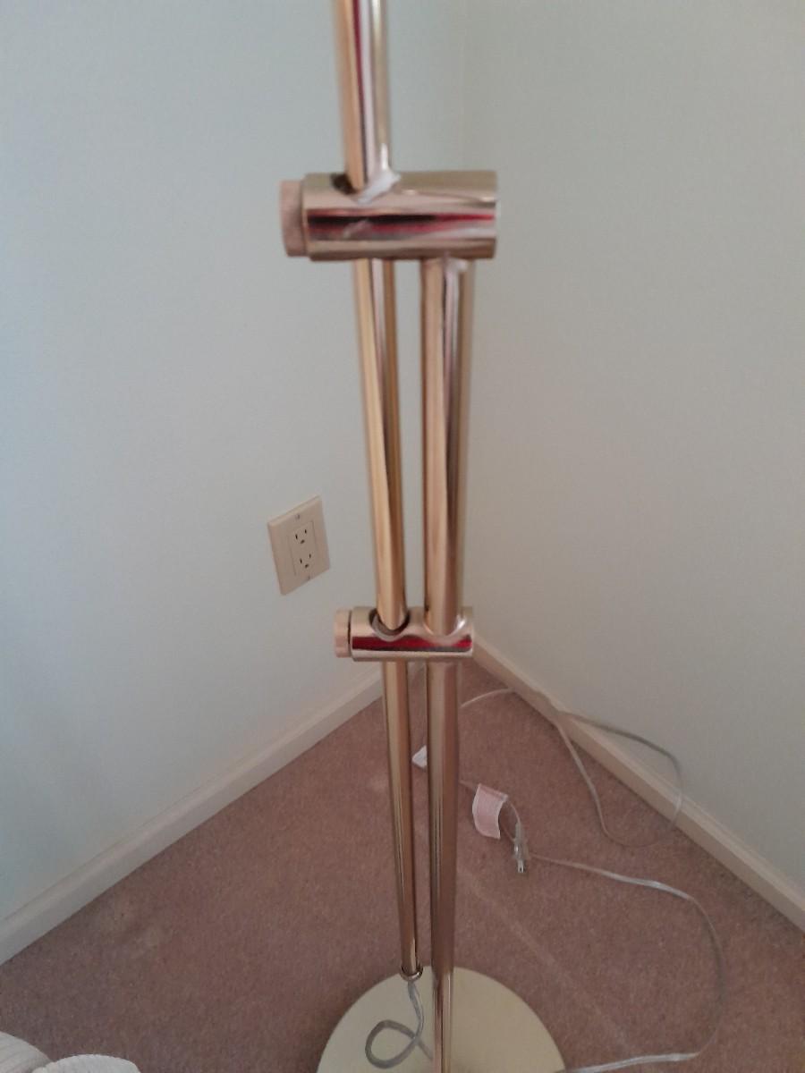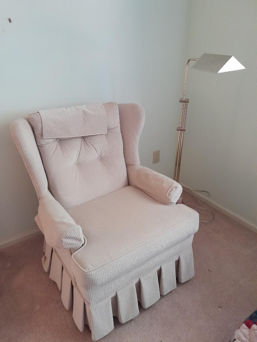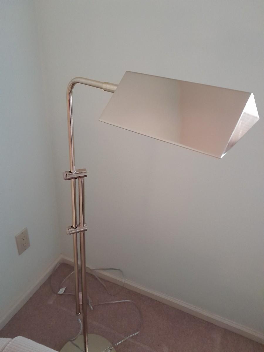 NICE CLEAN ARMCHAIR 33" X 28" X 25" WITH ADJUSTABLE BRASS FLOOR / OFFICE LAMP