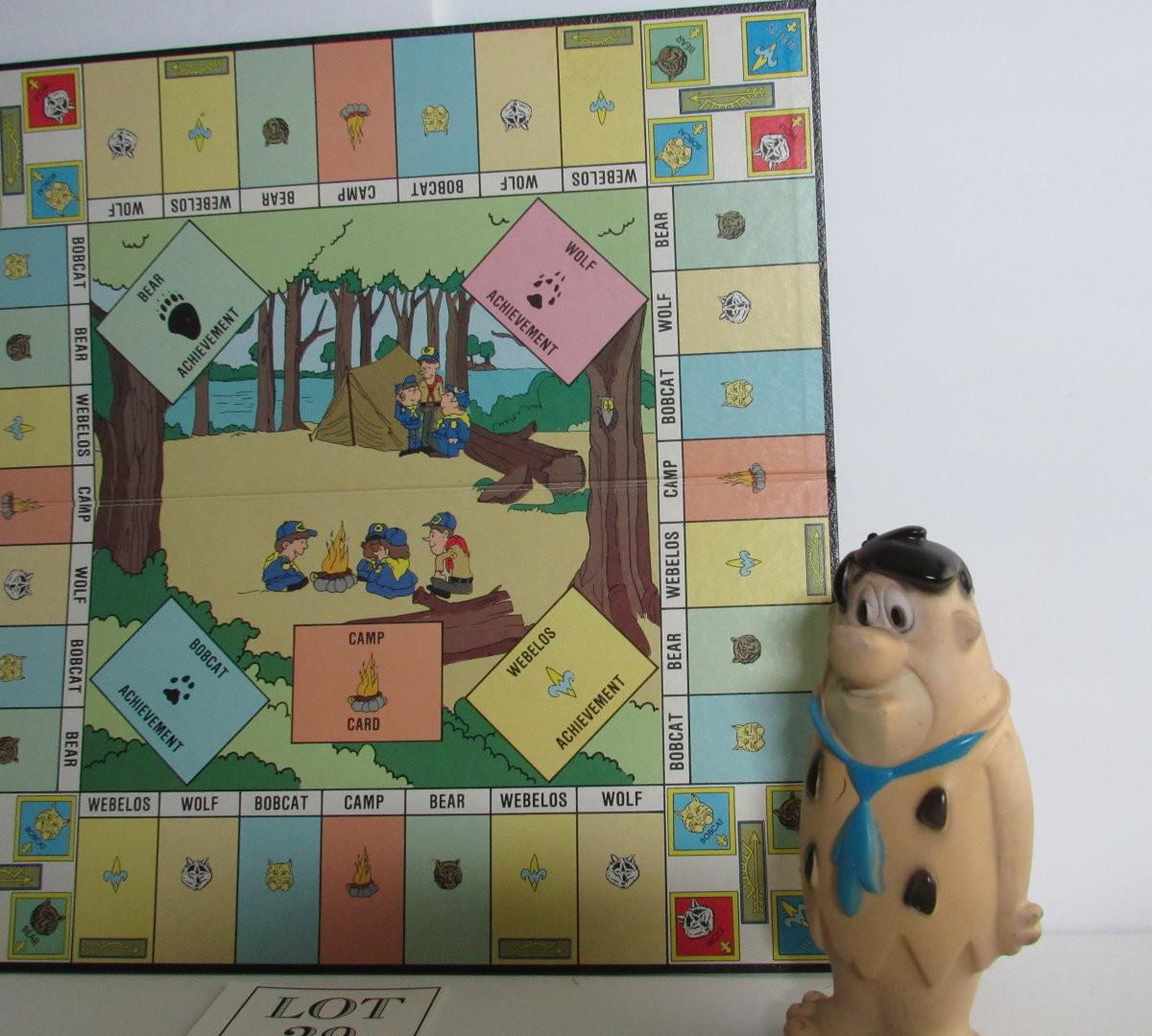 Nice Clean vintage Boy Scouts Game Board and Fred Flintstones Squeaker