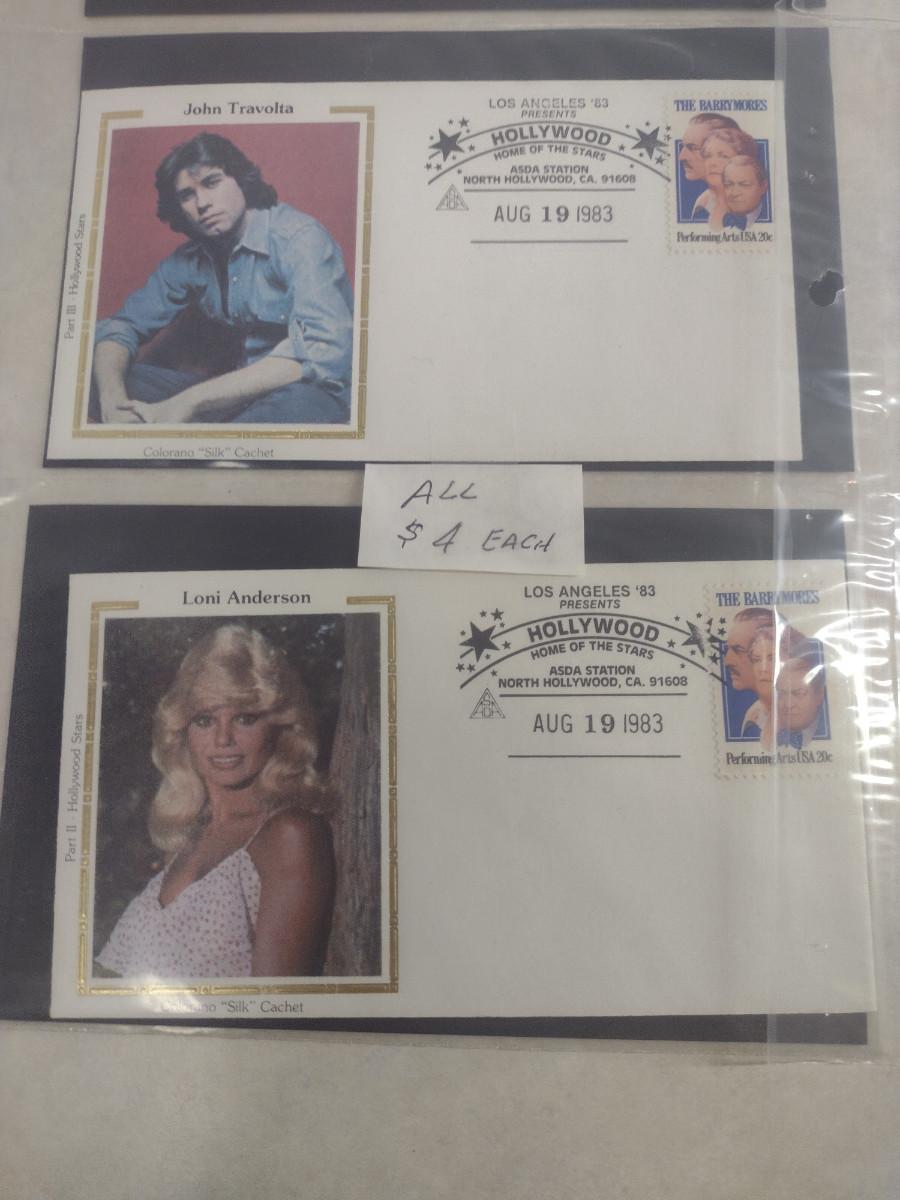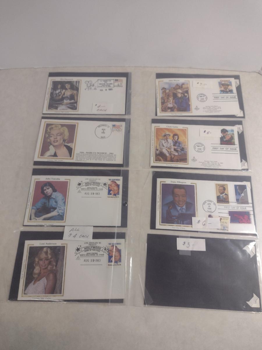 Collection of Celebrity First Day Cover Stamps- Includes John Travolta, Marilyn Monroe, Katherine Hepburn (#3). Please see all pictures for selection.