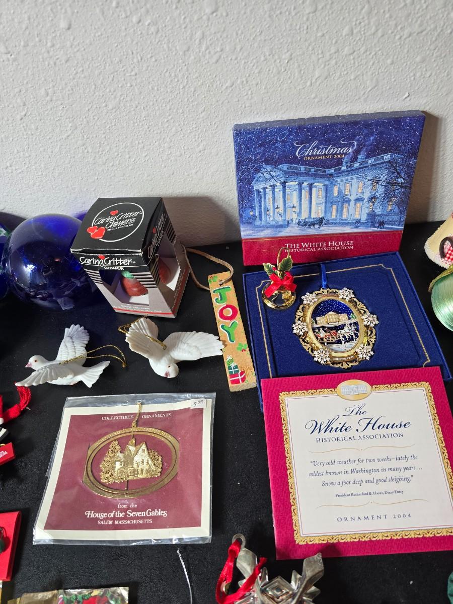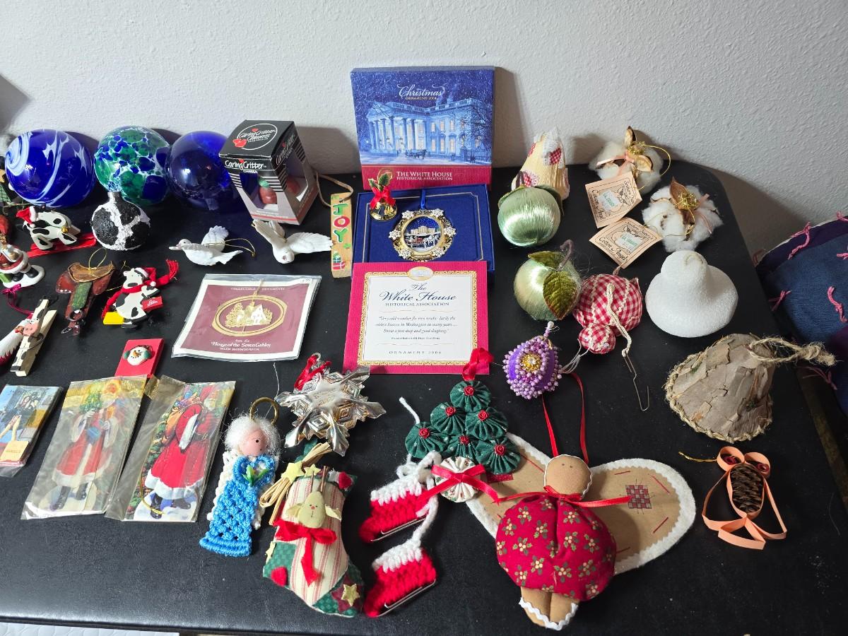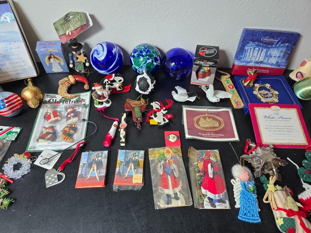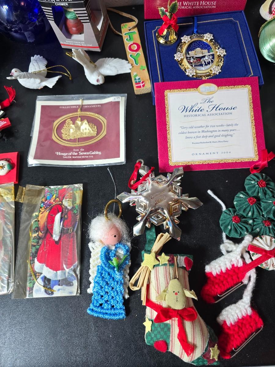 Nice collection of Christmas tree ornaments - USA Glass bulbs - White house - Santas - Angels - newer & vintage