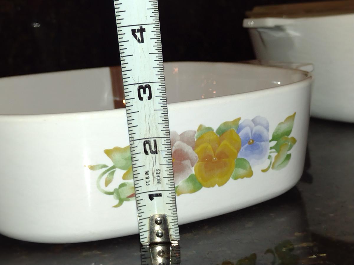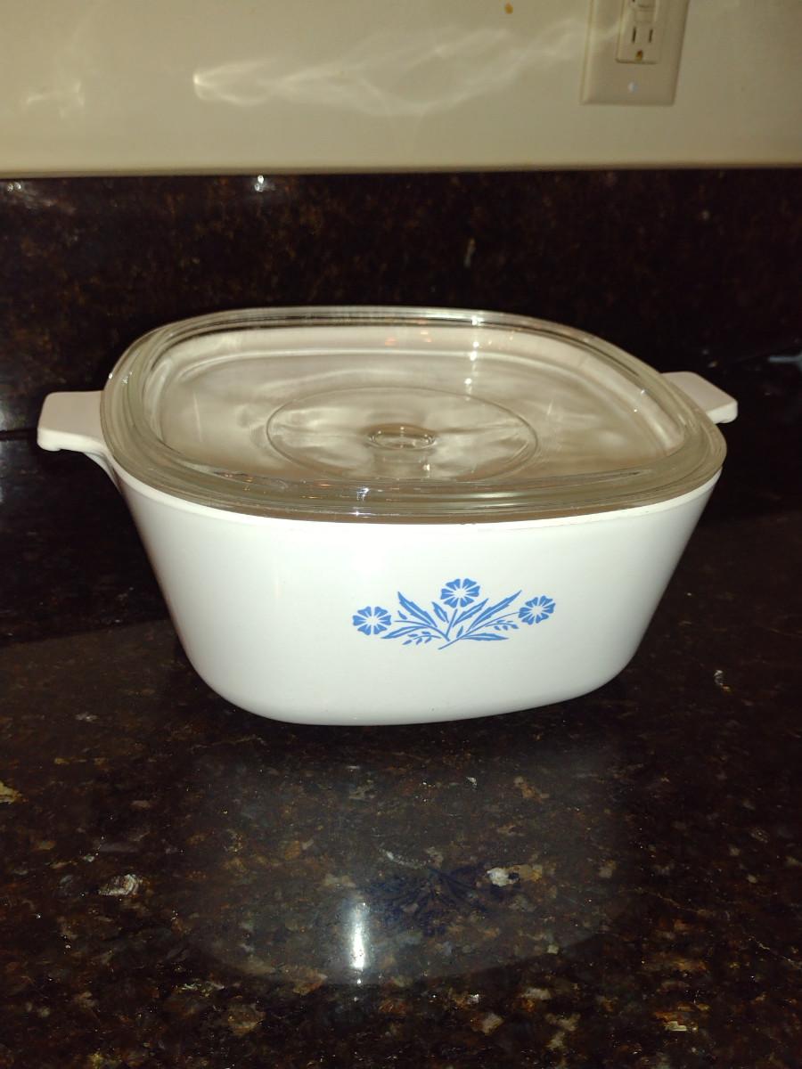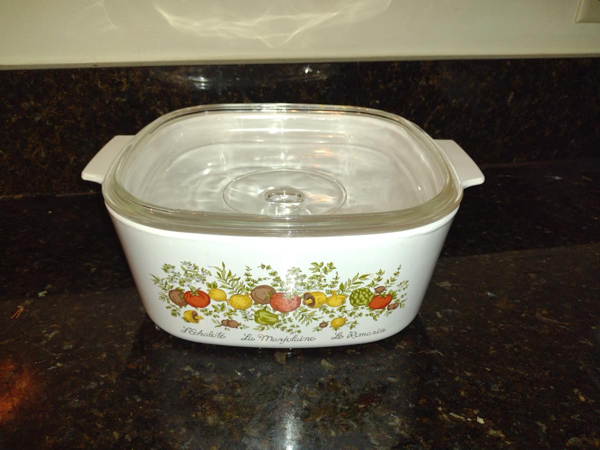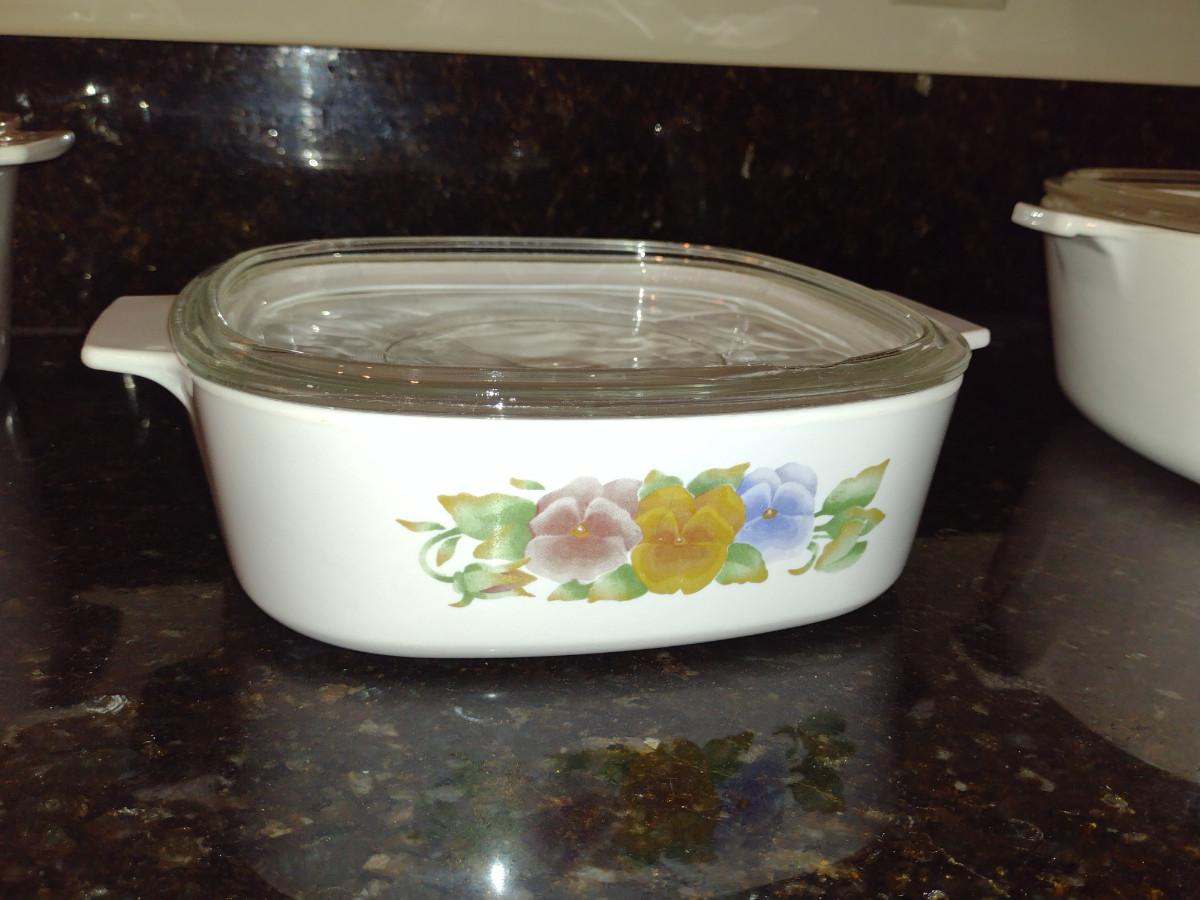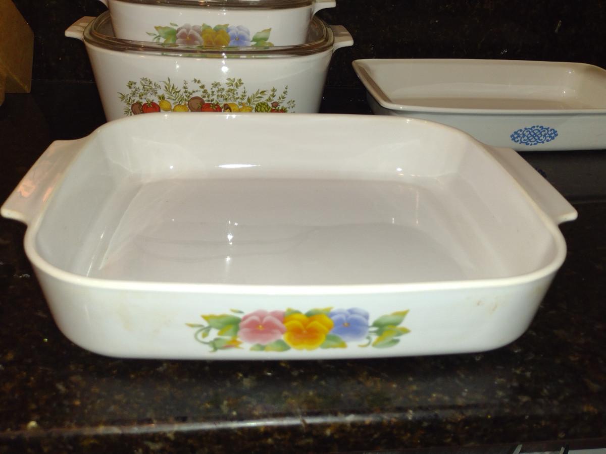Nice Collection of Corningware Baking Dishes- Assorted Designs and Sizes. Blue cornflower, pansies, spice of life designs. Four pieces come with lids.