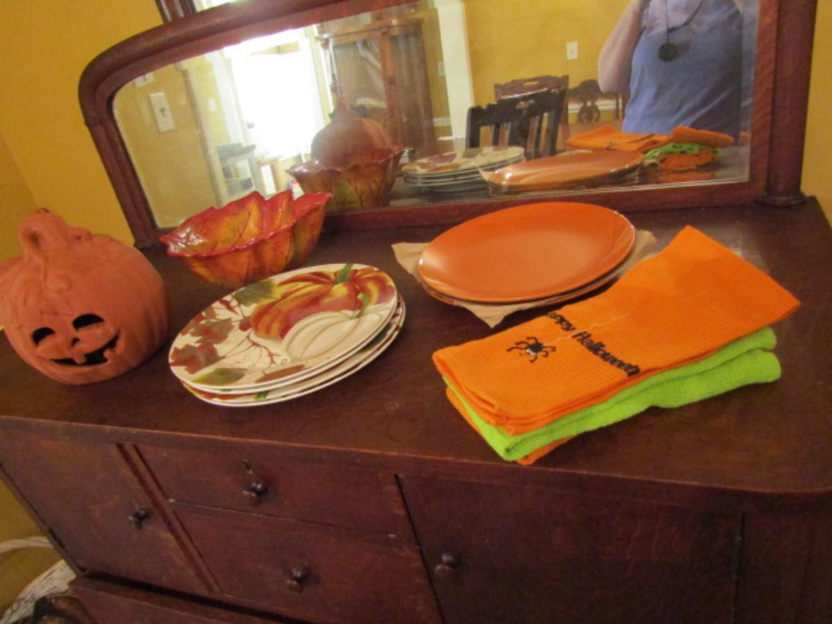 Nice Collection of Fall/Halloween Decor- Please See All Pictures. Includes ceramic/terra cotta pumpkins.