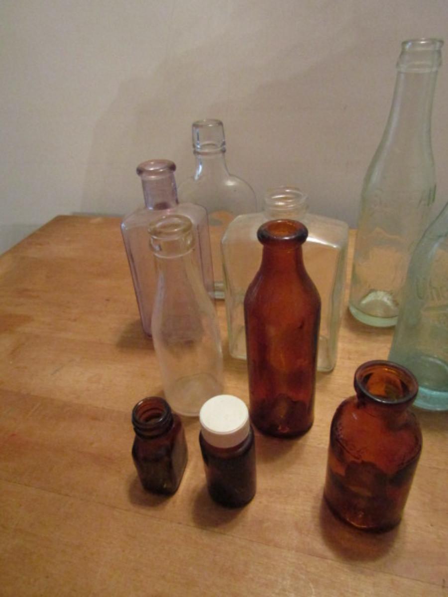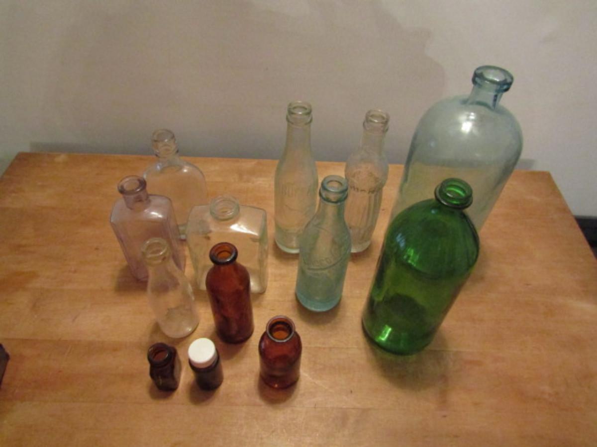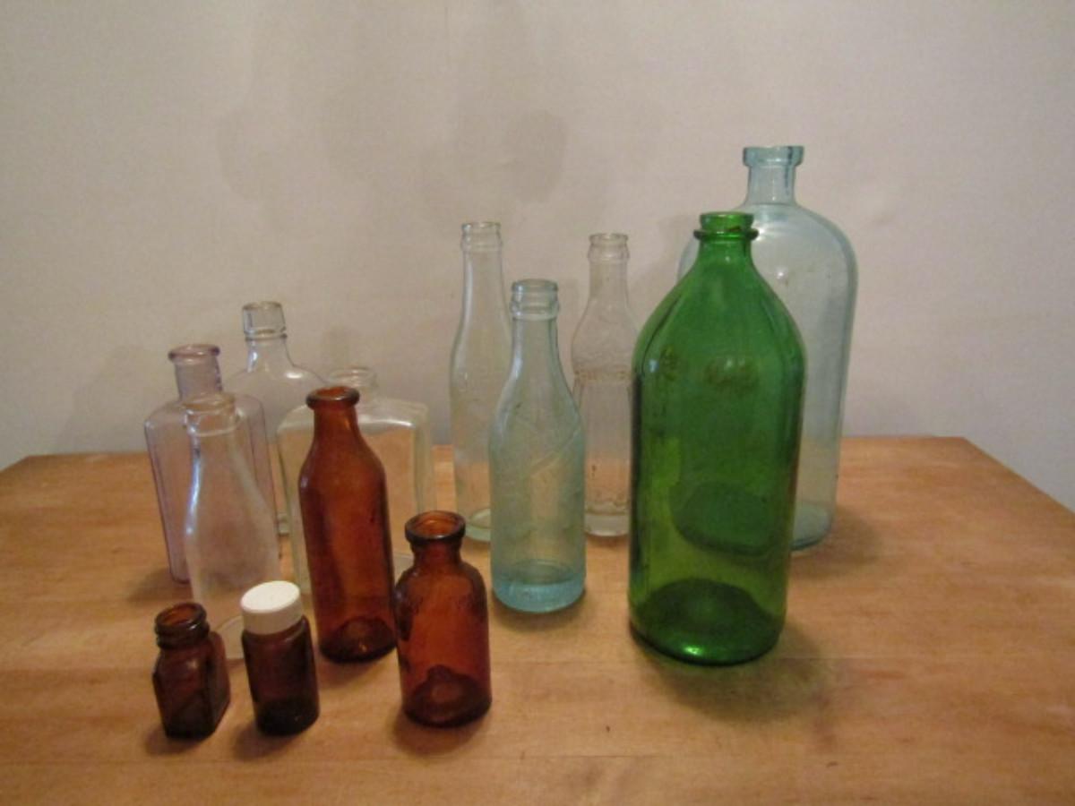 Nice Collection of Glass Bottles- Various Colors, Shapes, and Sizes