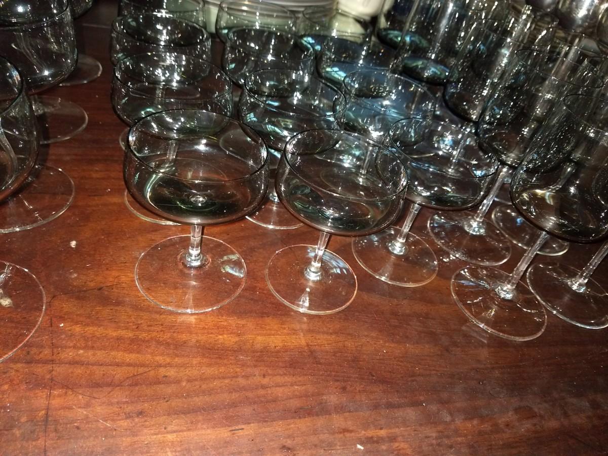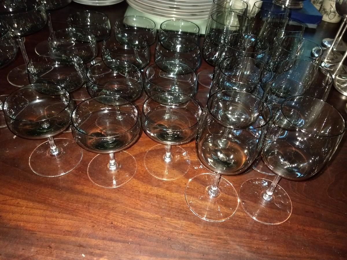 Nice Collection of Vintage Smoke Glass Drinking and Wine Glasses