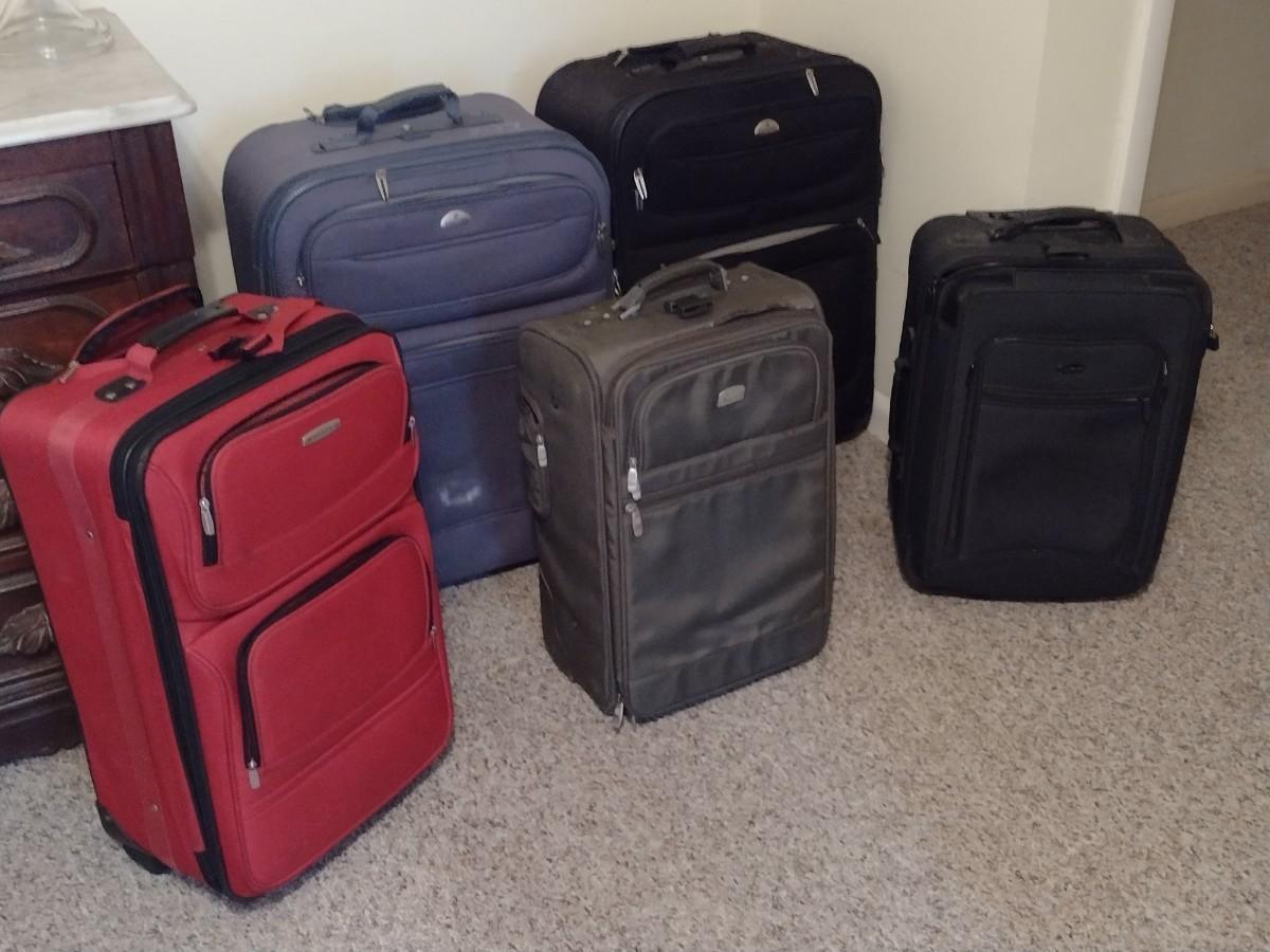 Nice Collection Set of Five Canvas Luggage Bags Various Sizes and Colors includes Samsonite