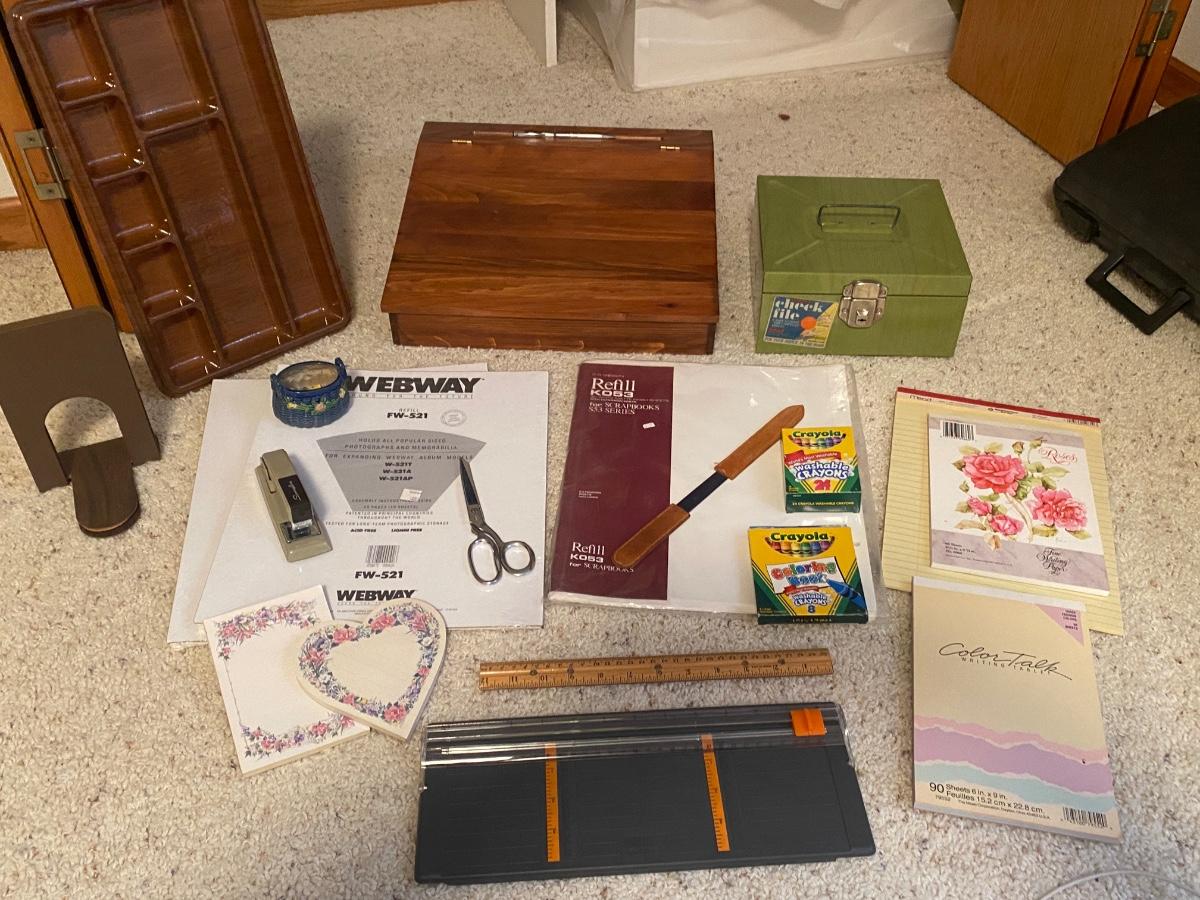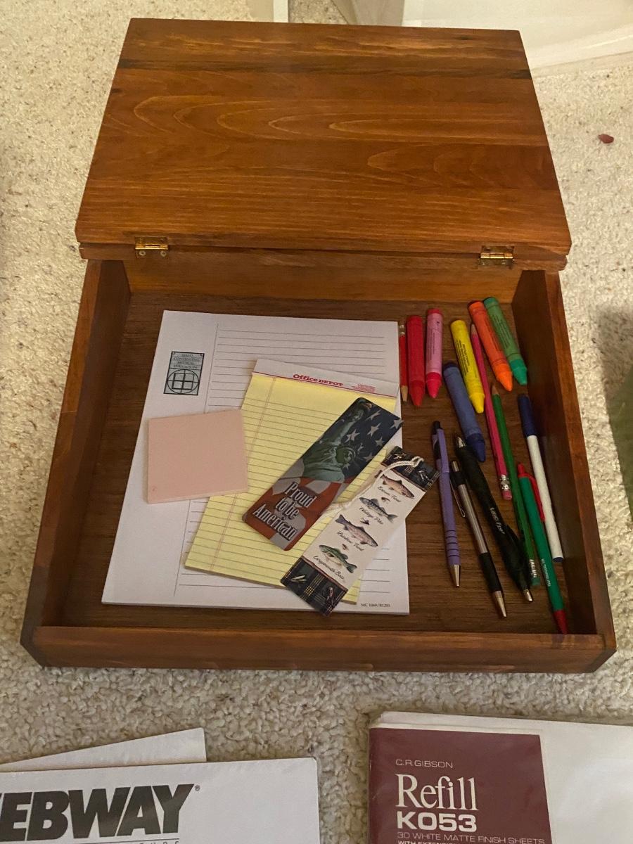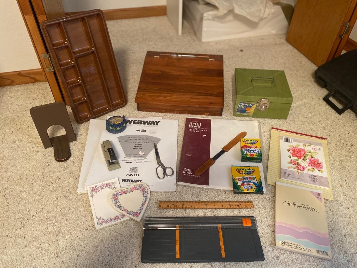 NICE DESK ORGANIZER, LOCK BOX W/KEY, & OTHER OFFICE SUPPLIES