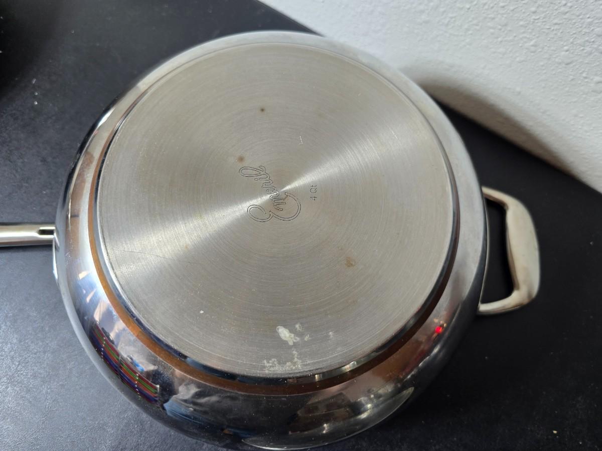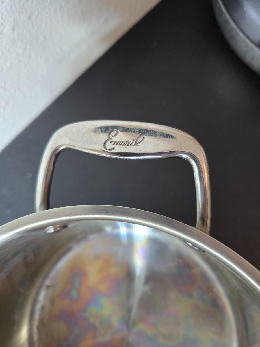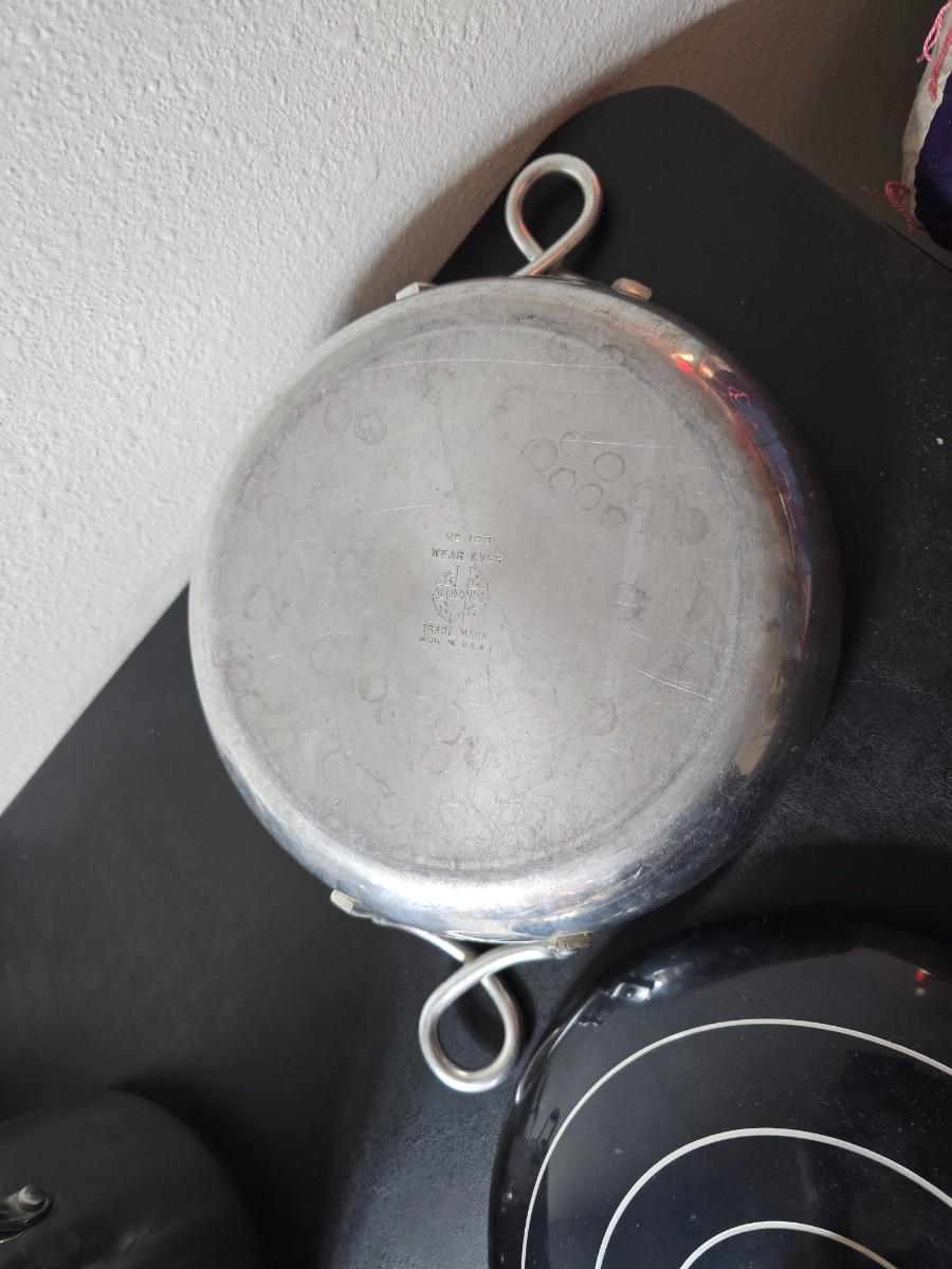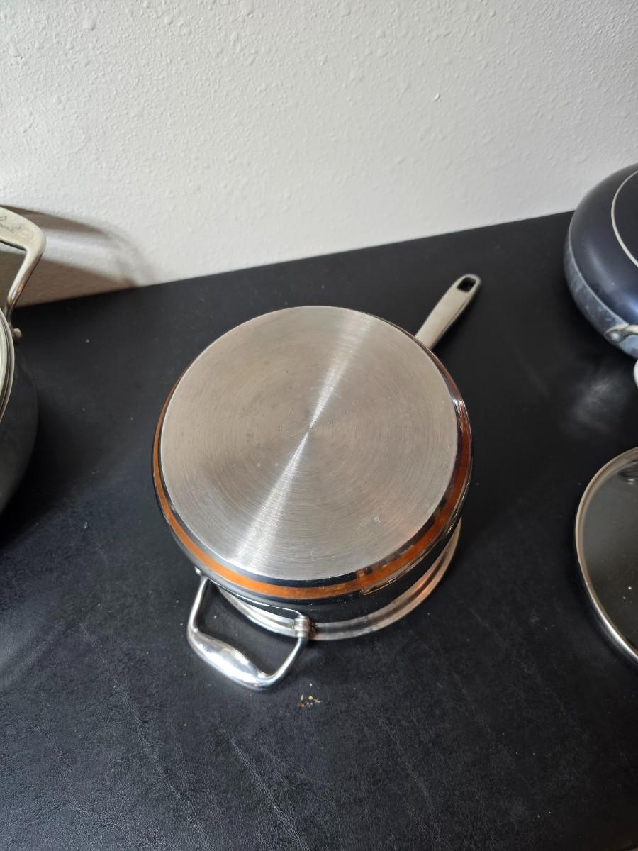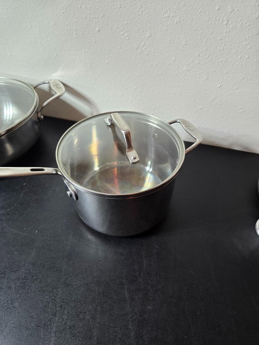 Nice Emeril three-piece pot & pan set, Wear-ever Aluminum pan with lid and a new Kitchen dish towel set