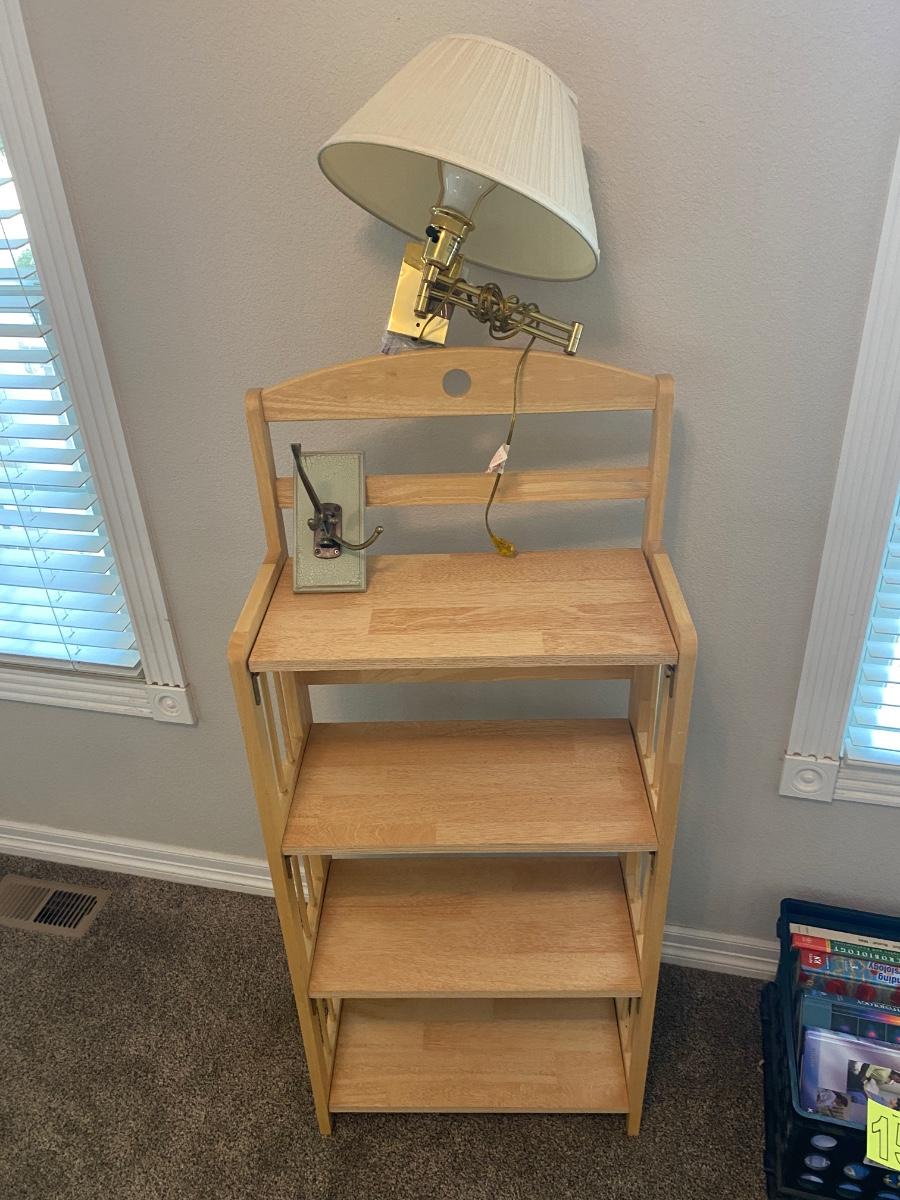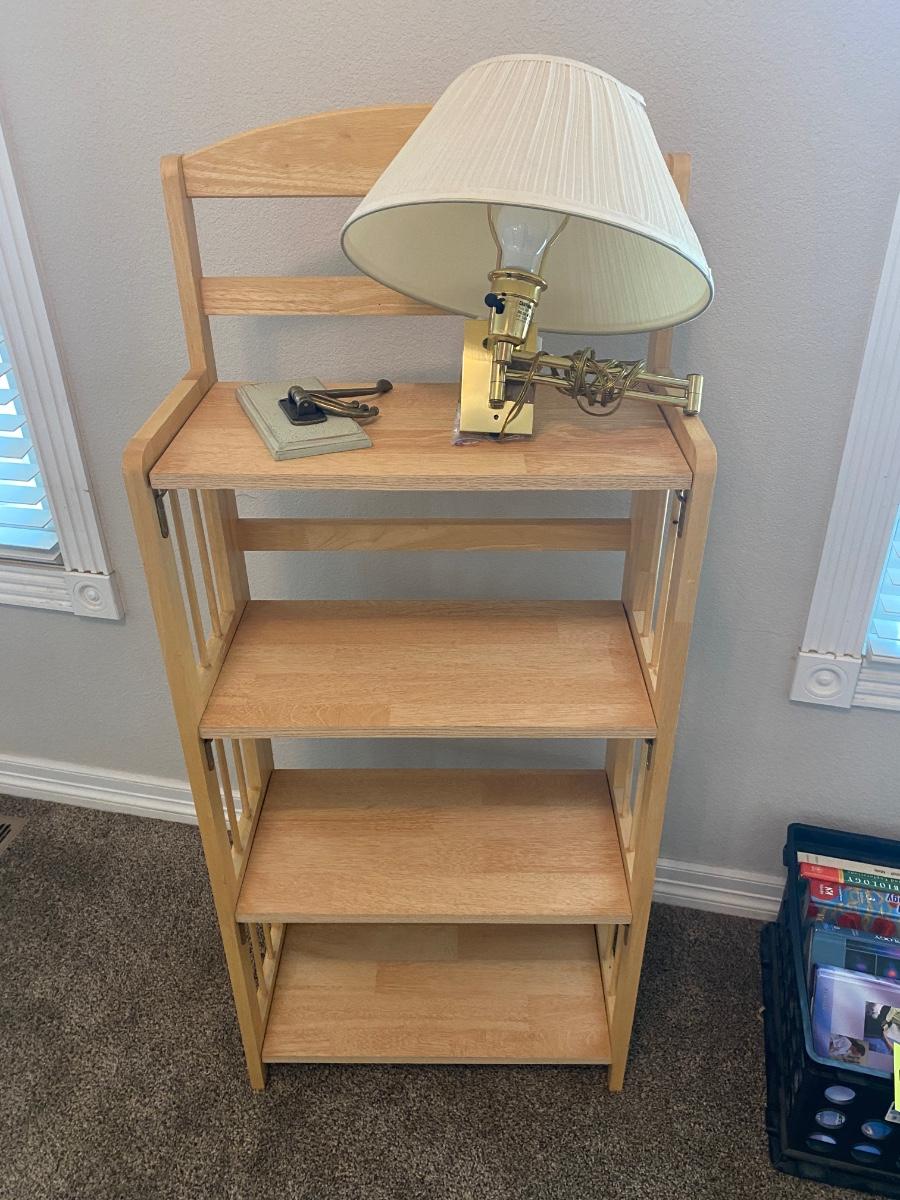 NICE FOLDING BOOKSHELF, WALL LAMP, AND NIFTY WALL HOOKS