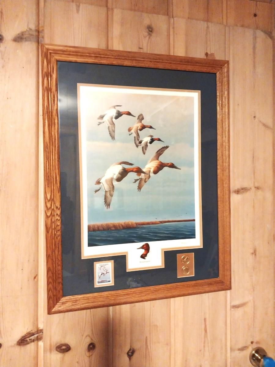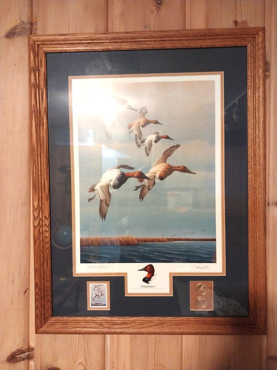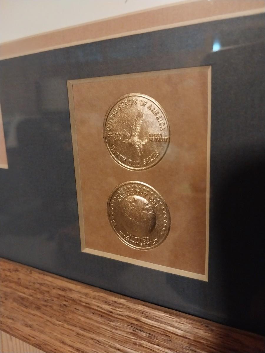 NICE FRAMED COLLECTIBLE PICTURE WITH STAMP AND REAL COIN