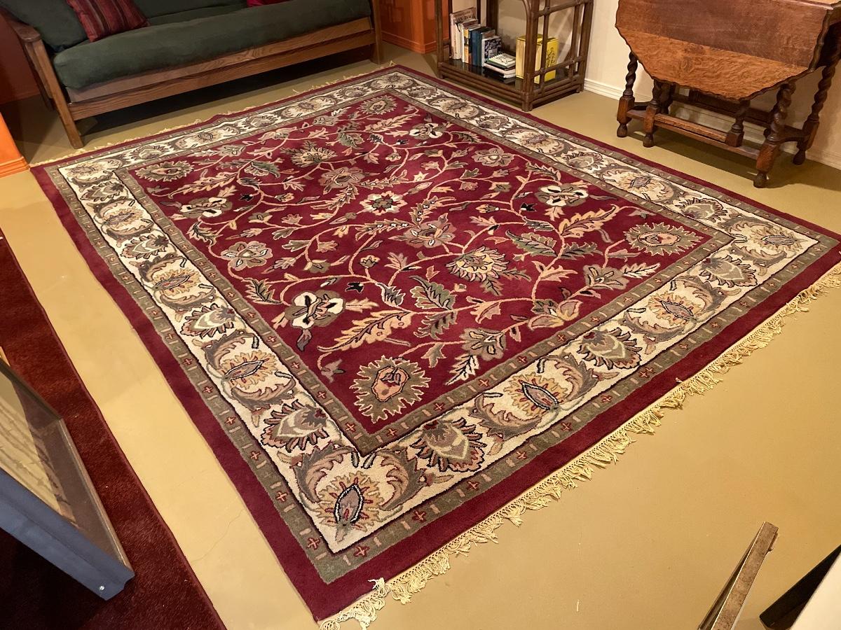 #183 Nice Large Fringed Wool Floral Rug