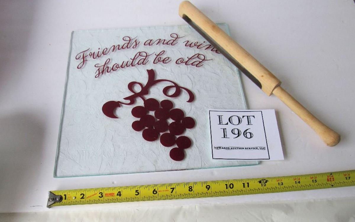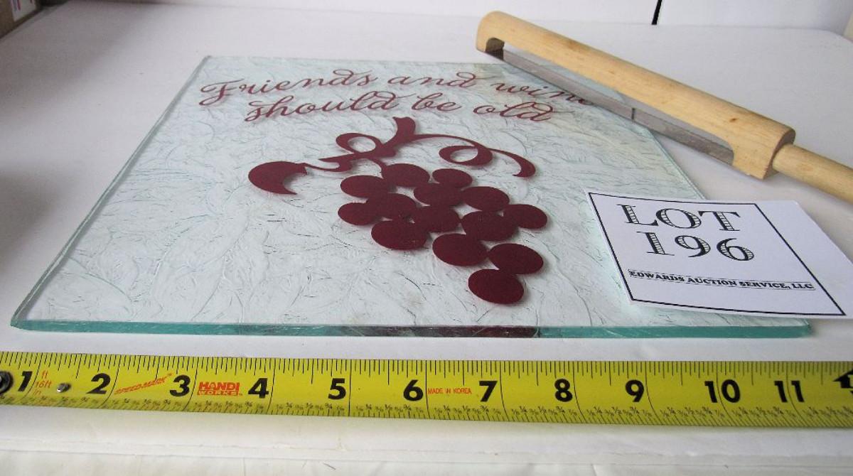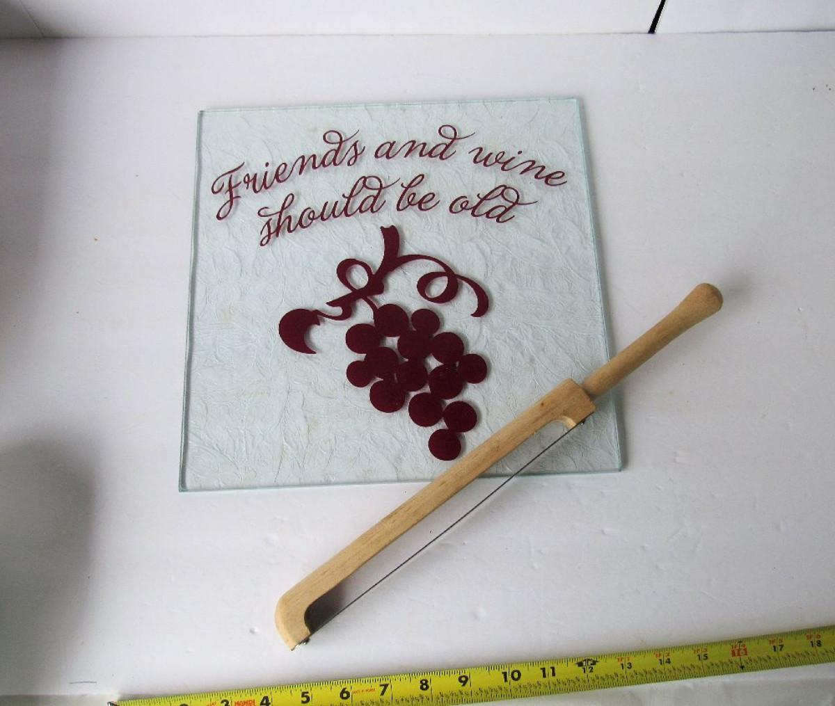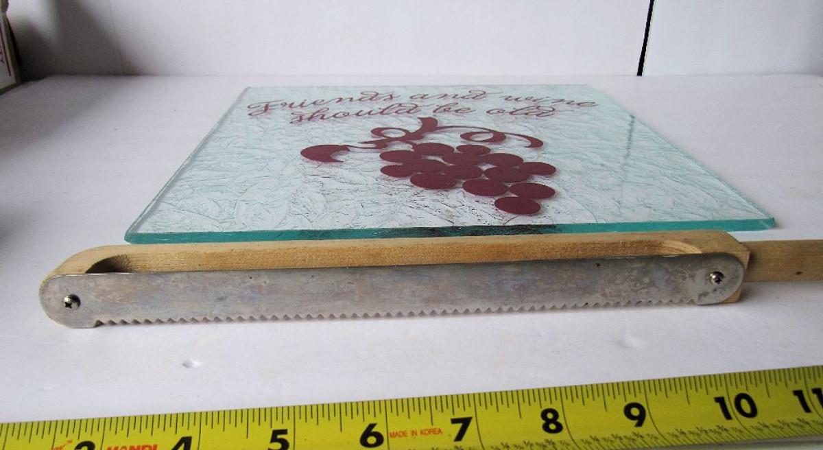 Nice Glass Cutting Board and Wood/Metal Serrated Bread Knife