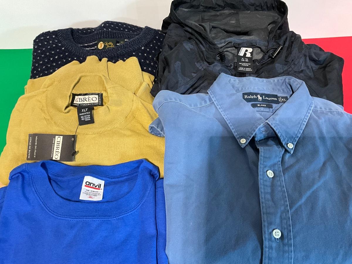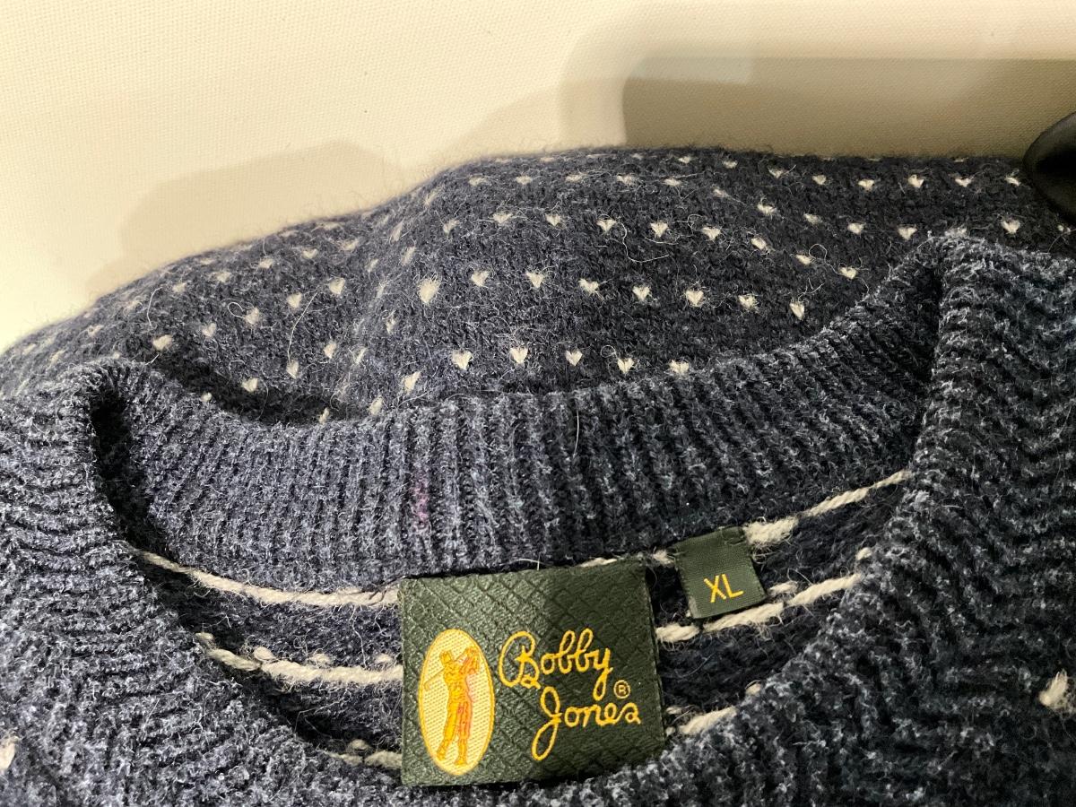Ralph Lauren long sleeved shirt, Cibreo (made in Italy) sweater, Bobby Jones sweater, Russell windbreaker