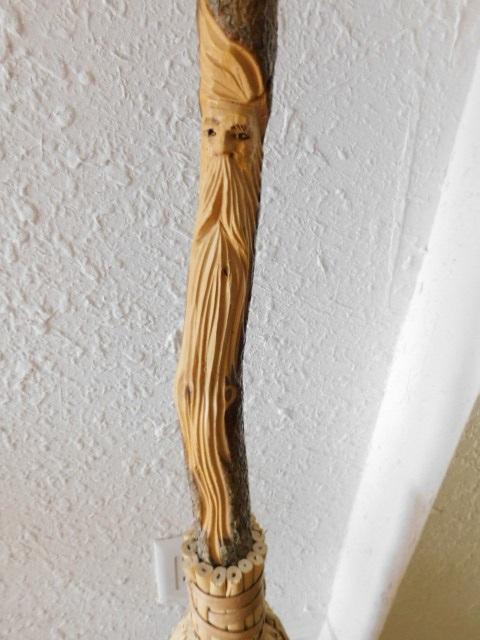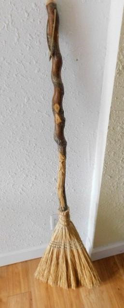 Nice Hand Crafted Besom with Wood Spirit Handle Carving