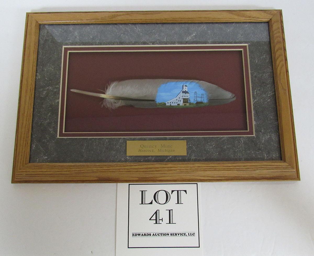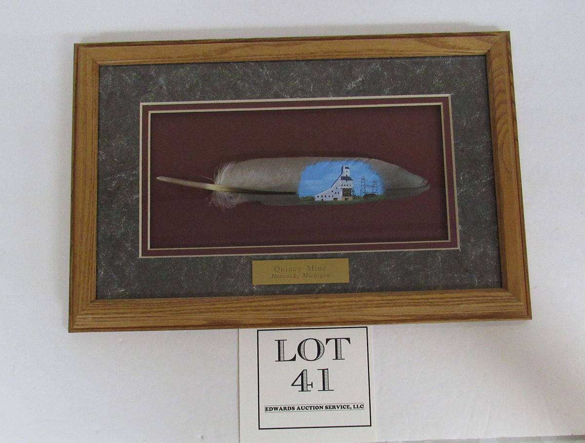 Nice Hand Painted Feather In Frame Quincy Mine in Hancock Michigan