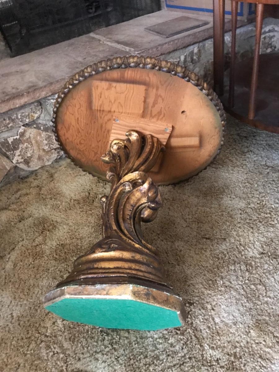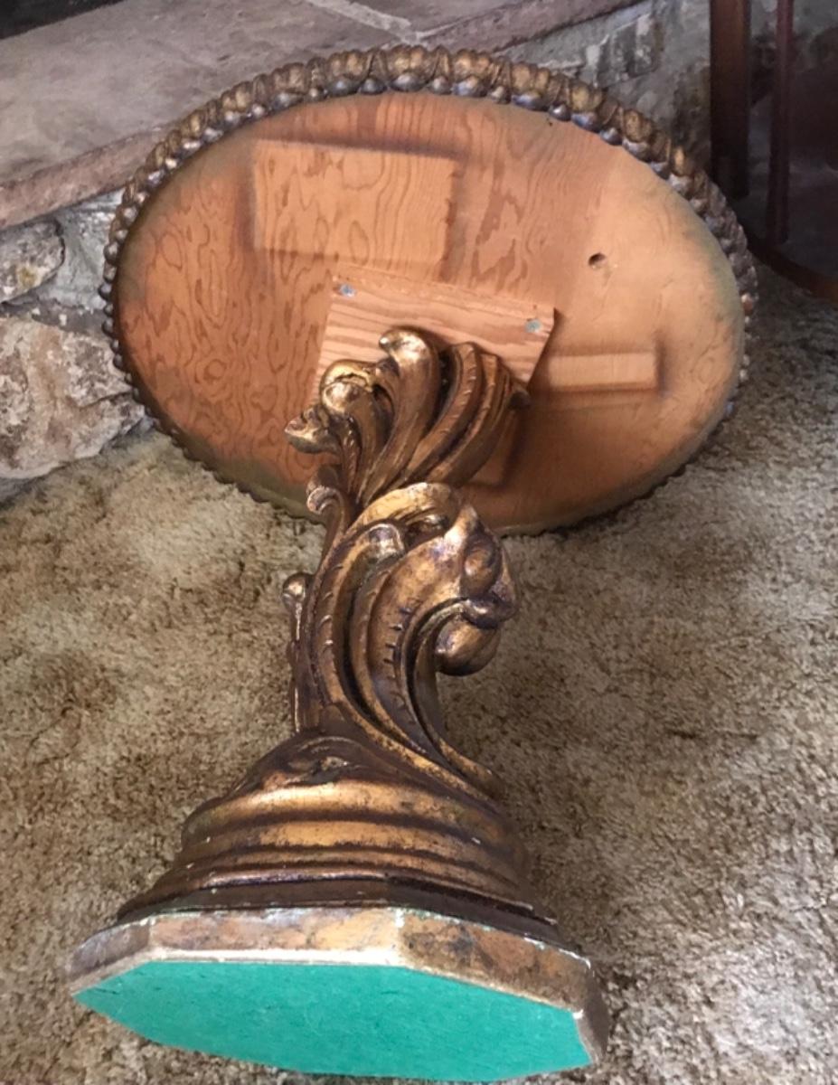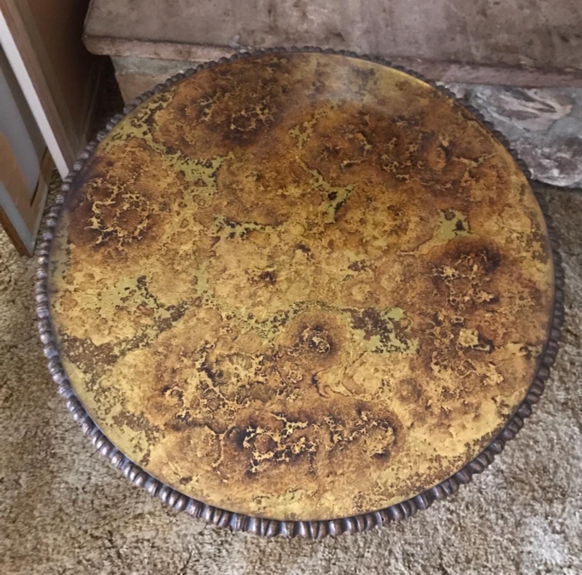 Nice Hollywood Regency style accent table, round, plaster base, golden gilt