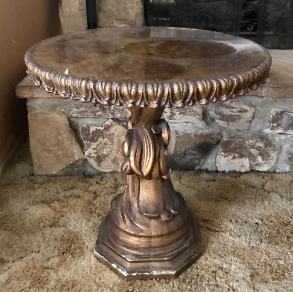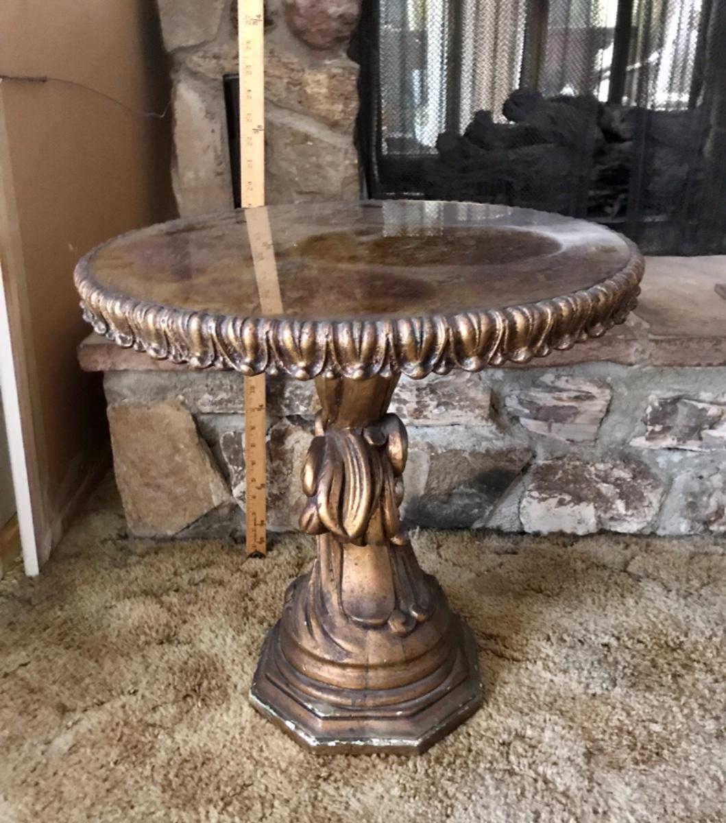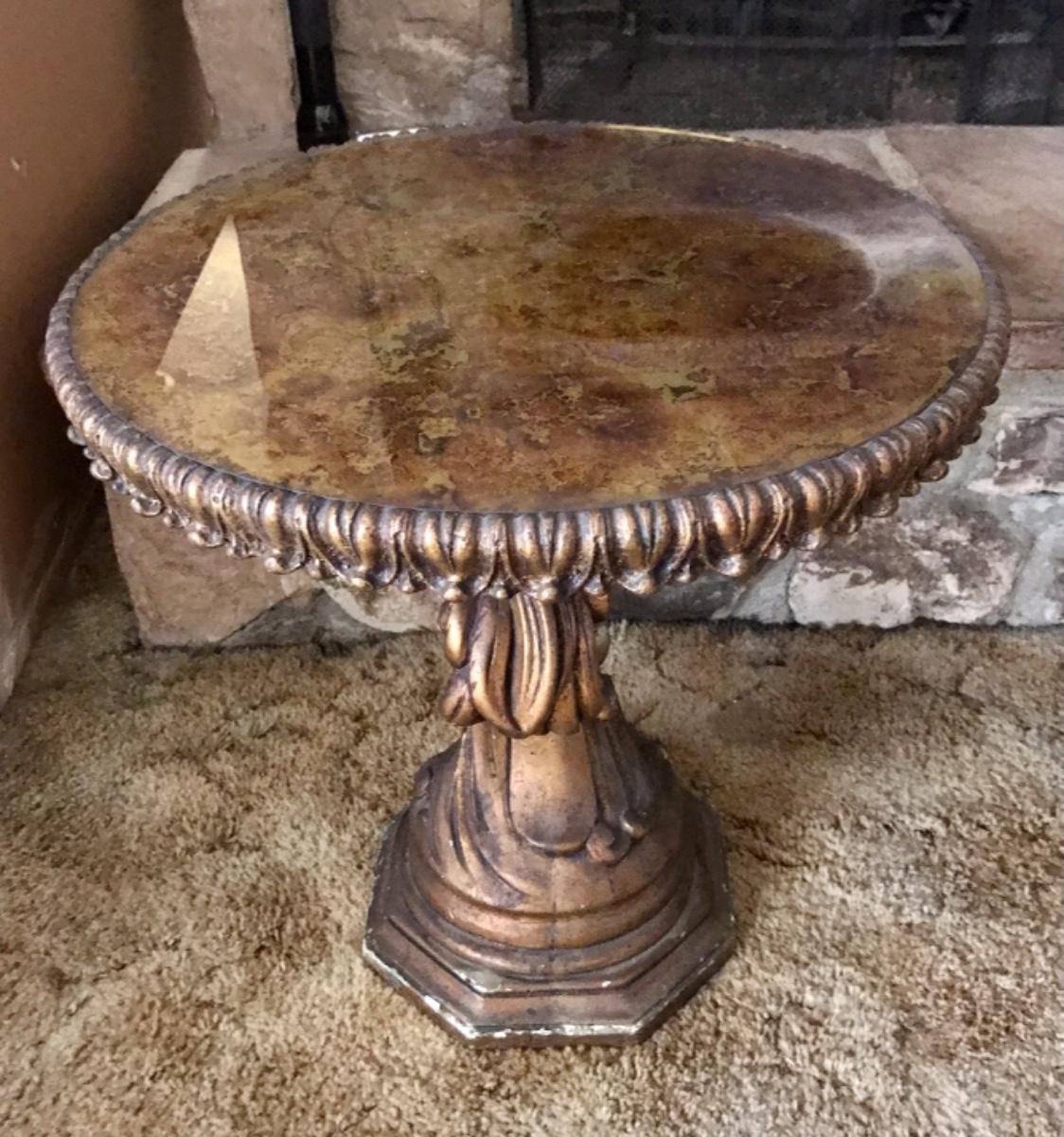 Nice Hollywood Regency style accent table, round, plaster base, golden gilt