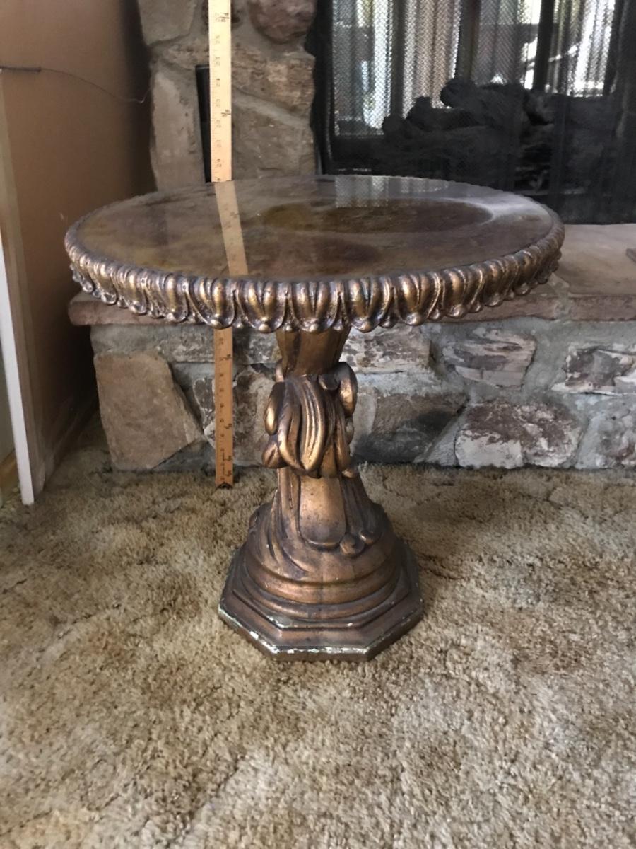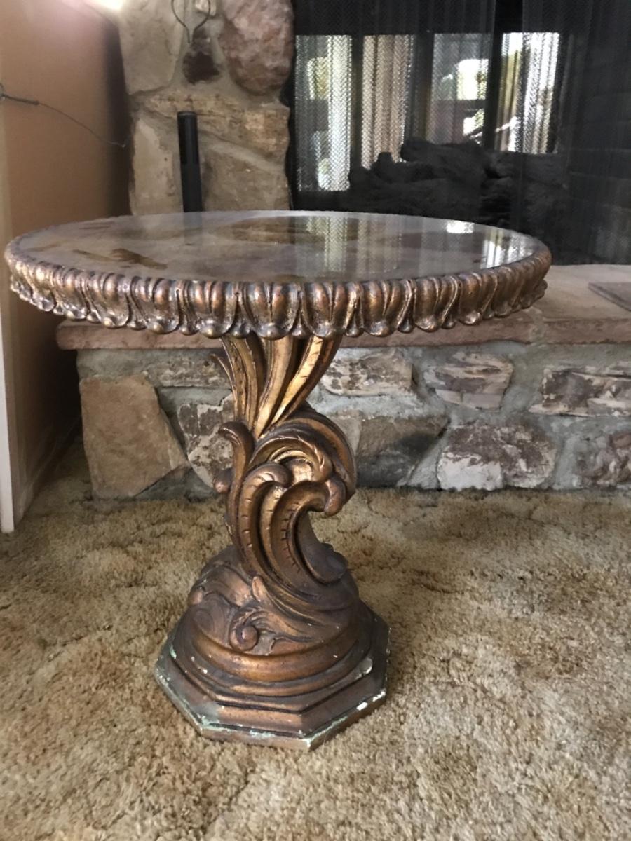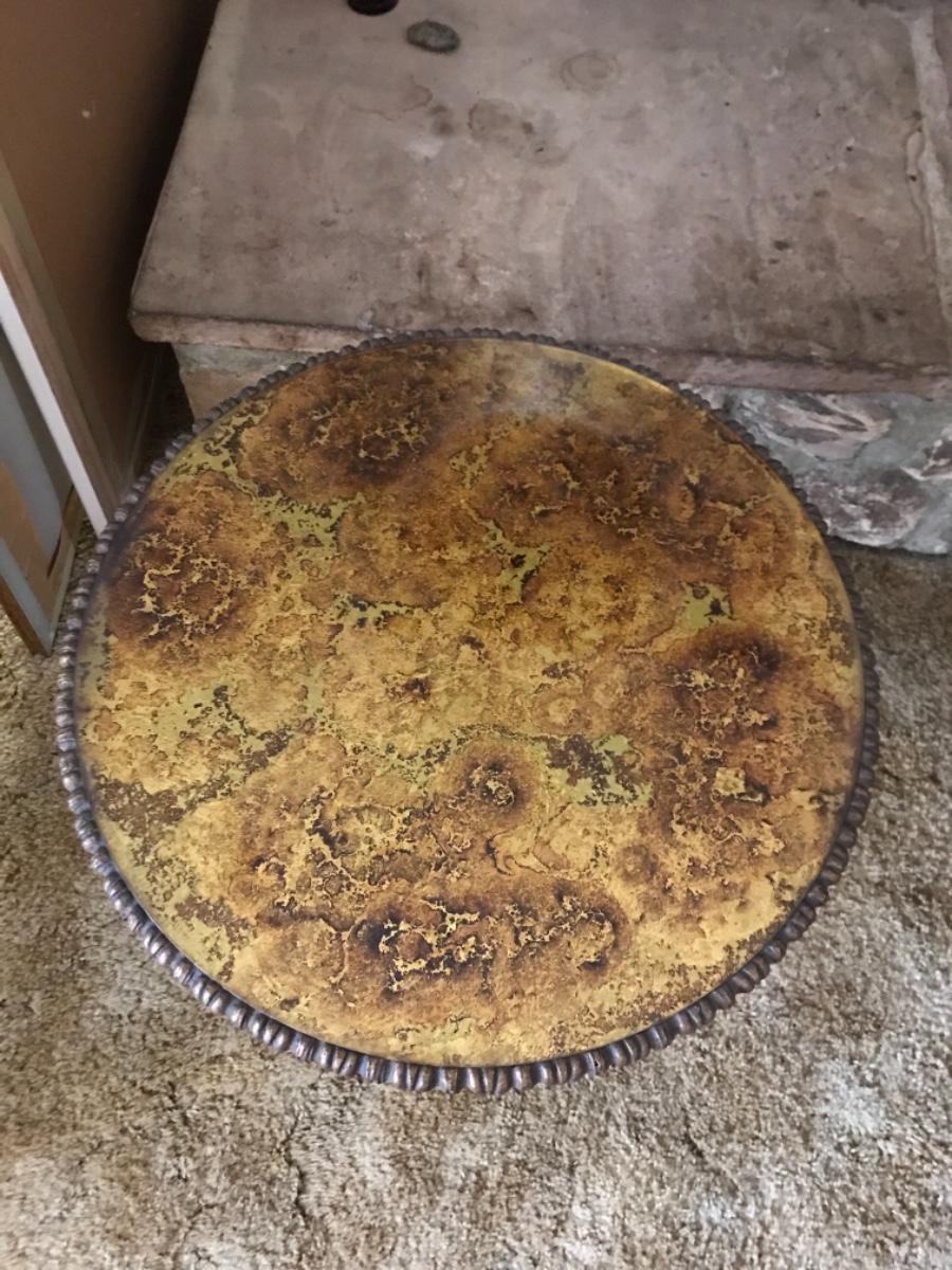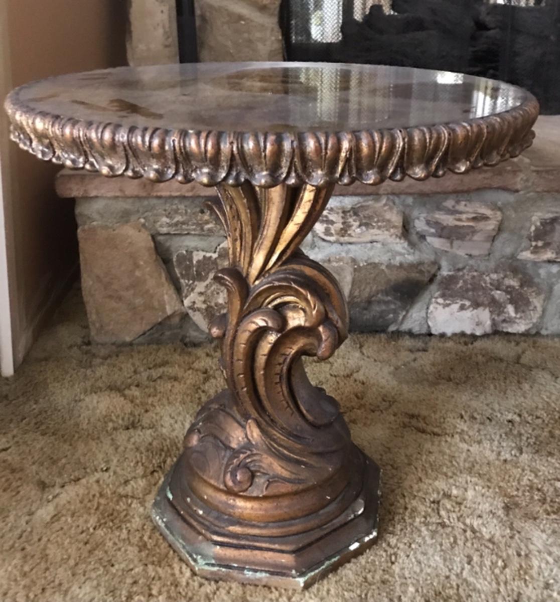 Nice Hollywood Regency style accent table, round, plaster base, golden gilt