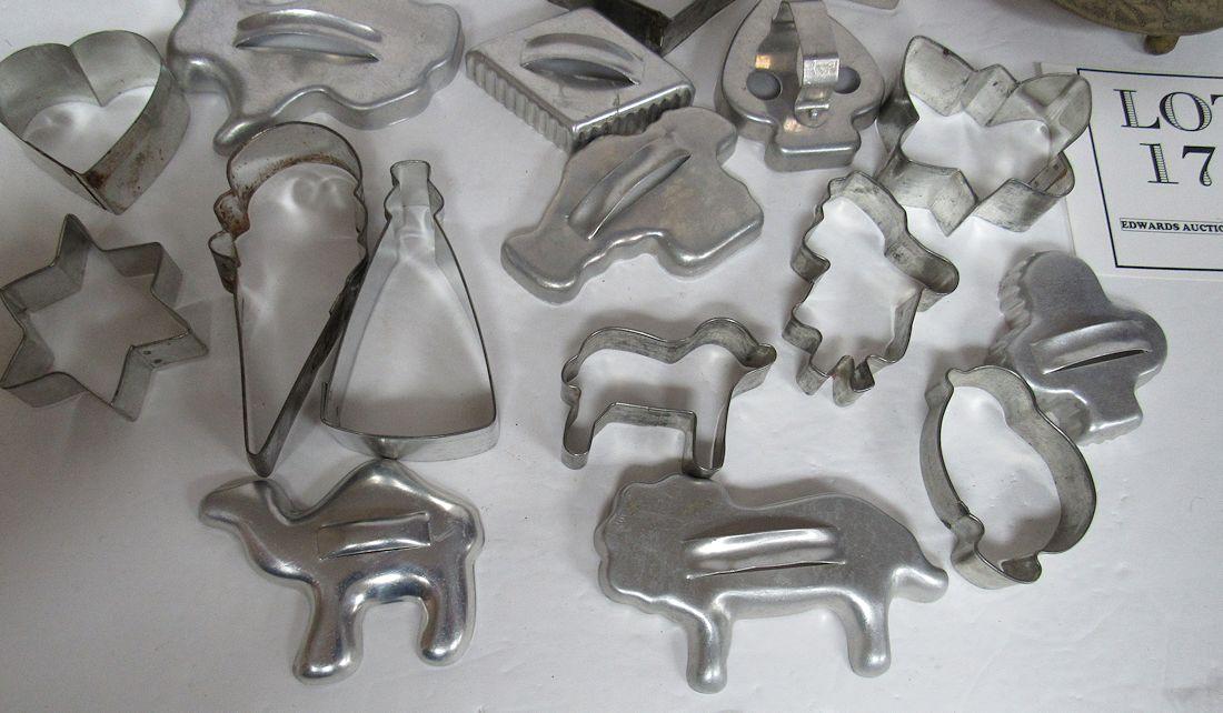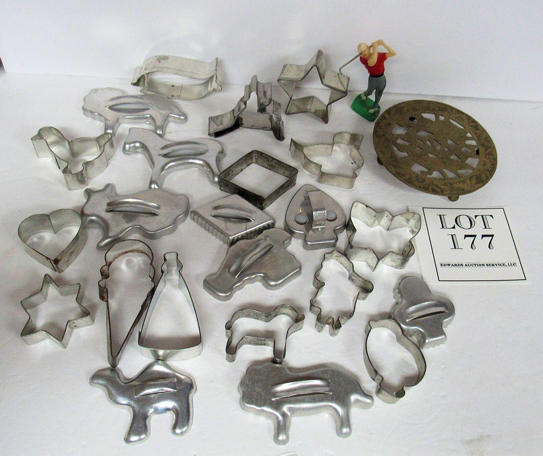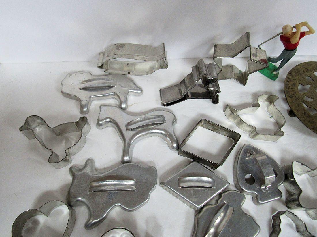 Nice Large Lot of Vintage Cookie Cutters, Brass Trivet