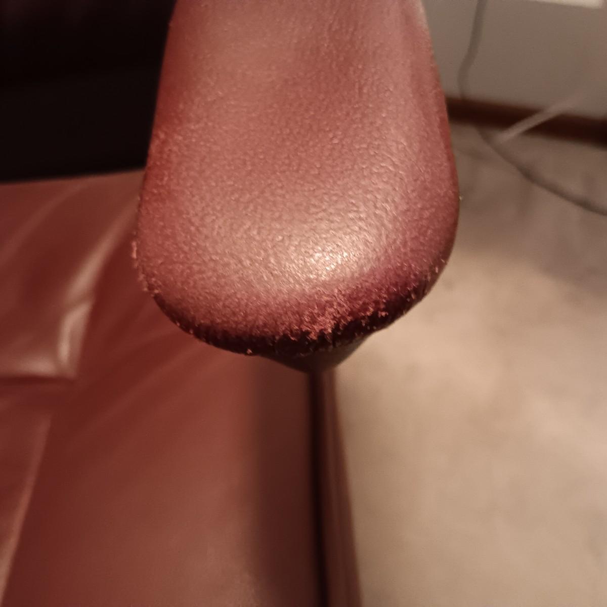 THERE ARE A FEW SMALL RUBS AND THE SEAM ON THE SEAT IS STRETCHED A LITTLE BIT