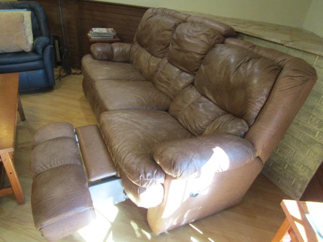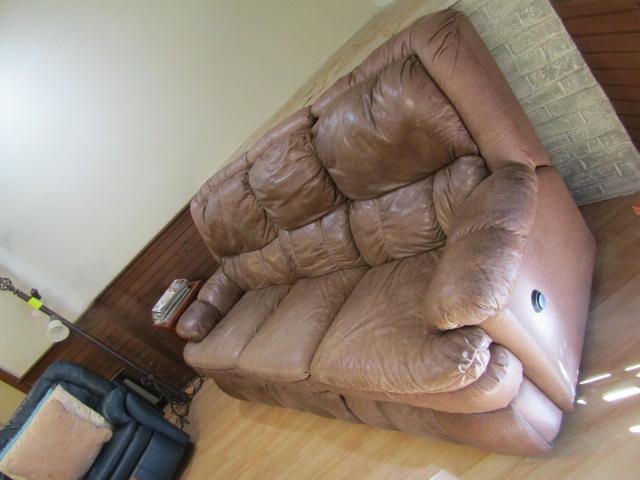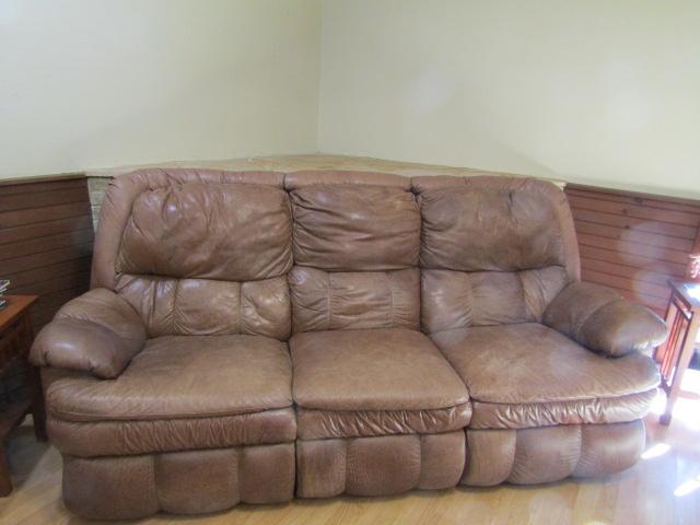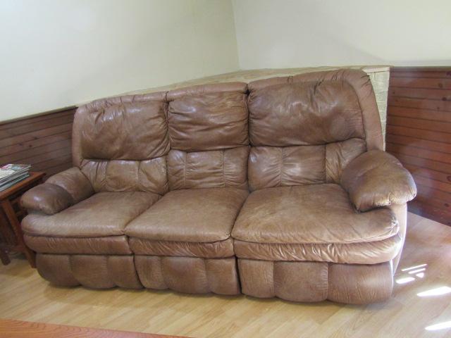 Nice Light Brown Faux Leather Double Recliner Couch easy access no stairs to the driveway