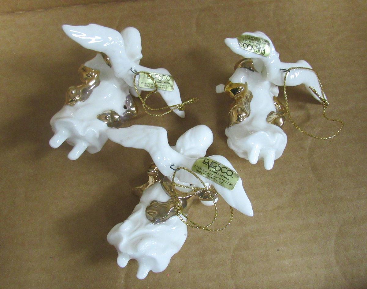 All in very good shape. The baby Jesus does not match the rest of the set, but works. Unmarked. The angels are Enesco. Shipping is available at cost of shipping plus $5.00 handling fee on up to 8 items, $10.00 handling fee on 9+ items.