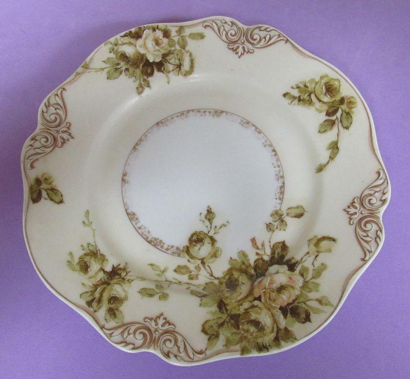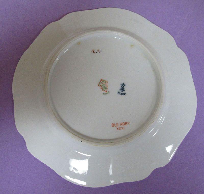 All are in very good condition. The vase is spectacular with no damage to the applied flowers. The Silesia plate is Old Ivory pastern and is very pretty.