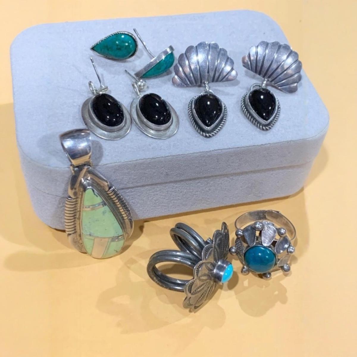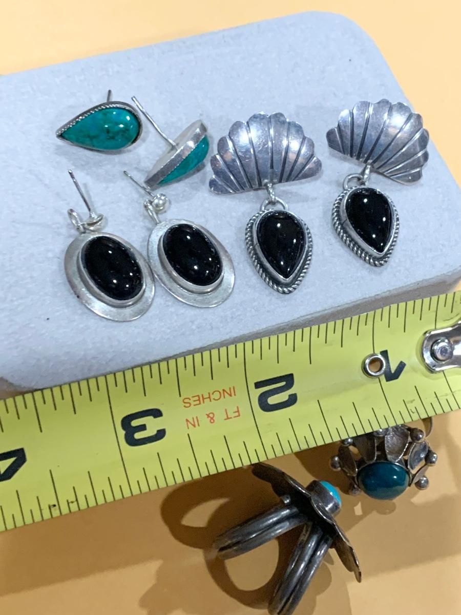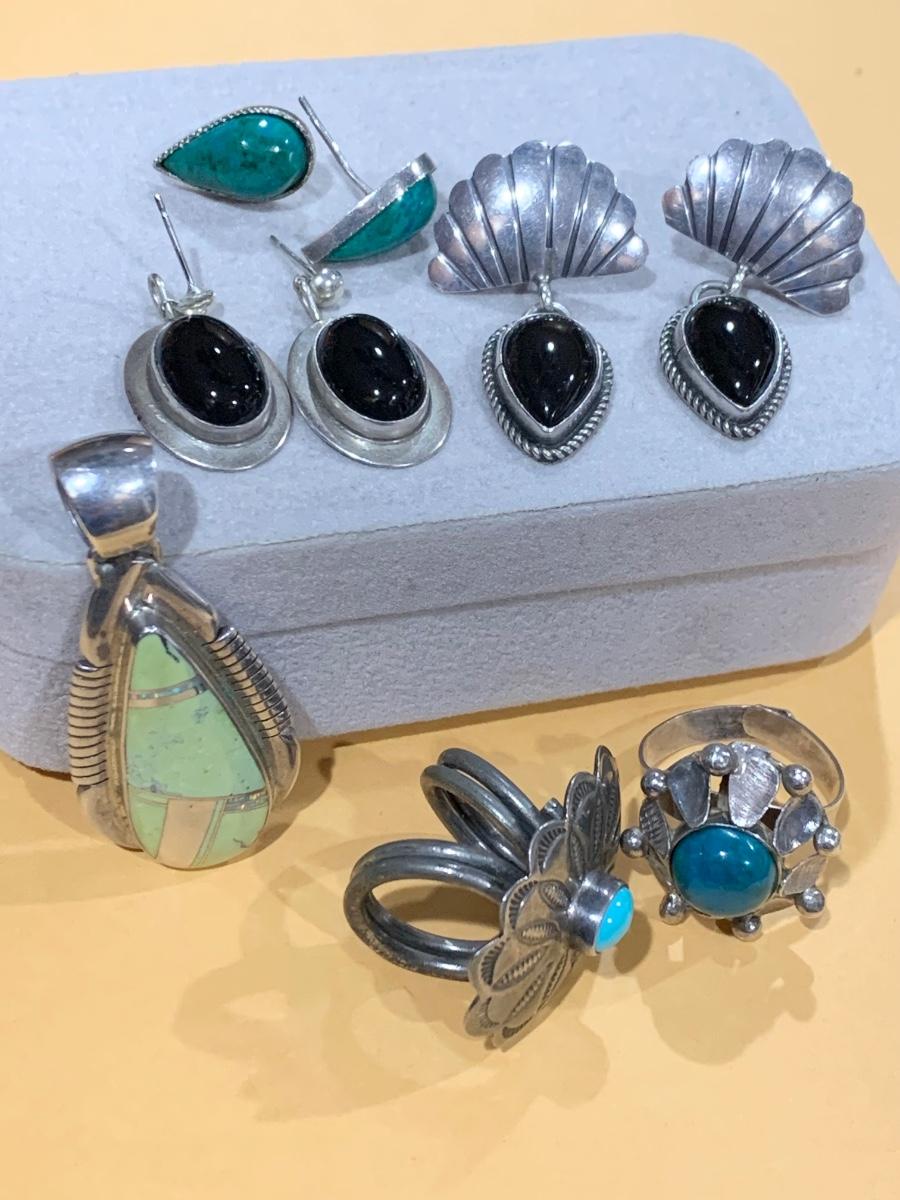 Nice Lot - SW Sterling Jewelry Lot - Signed J. Charley Pendant + Sterling Earrings & Rings