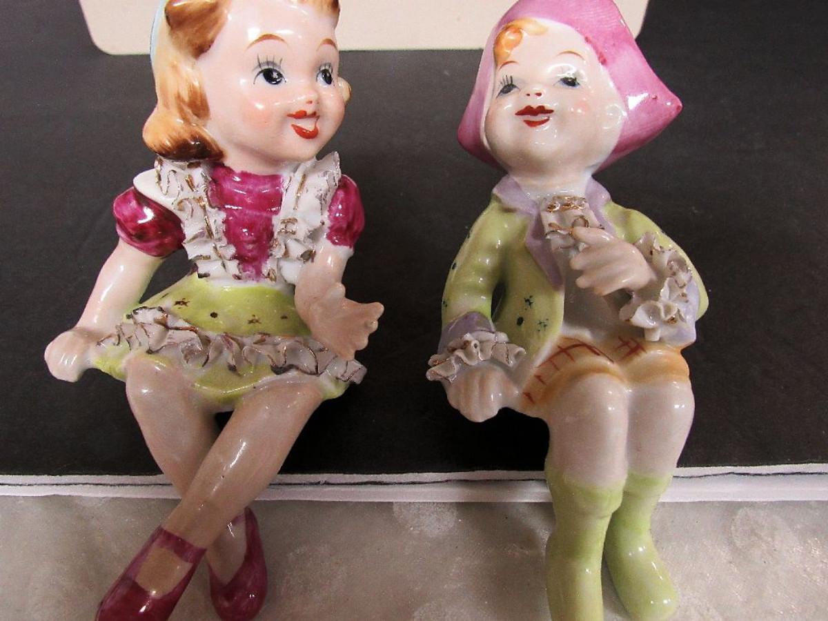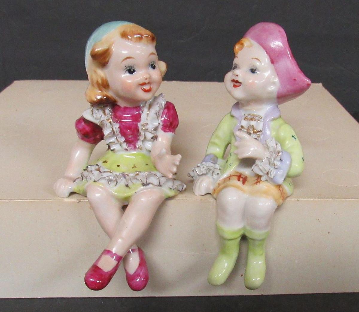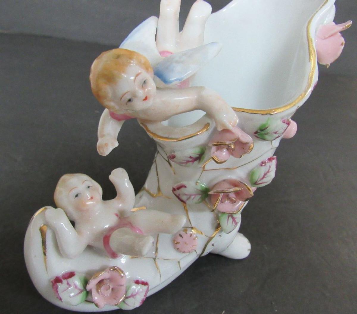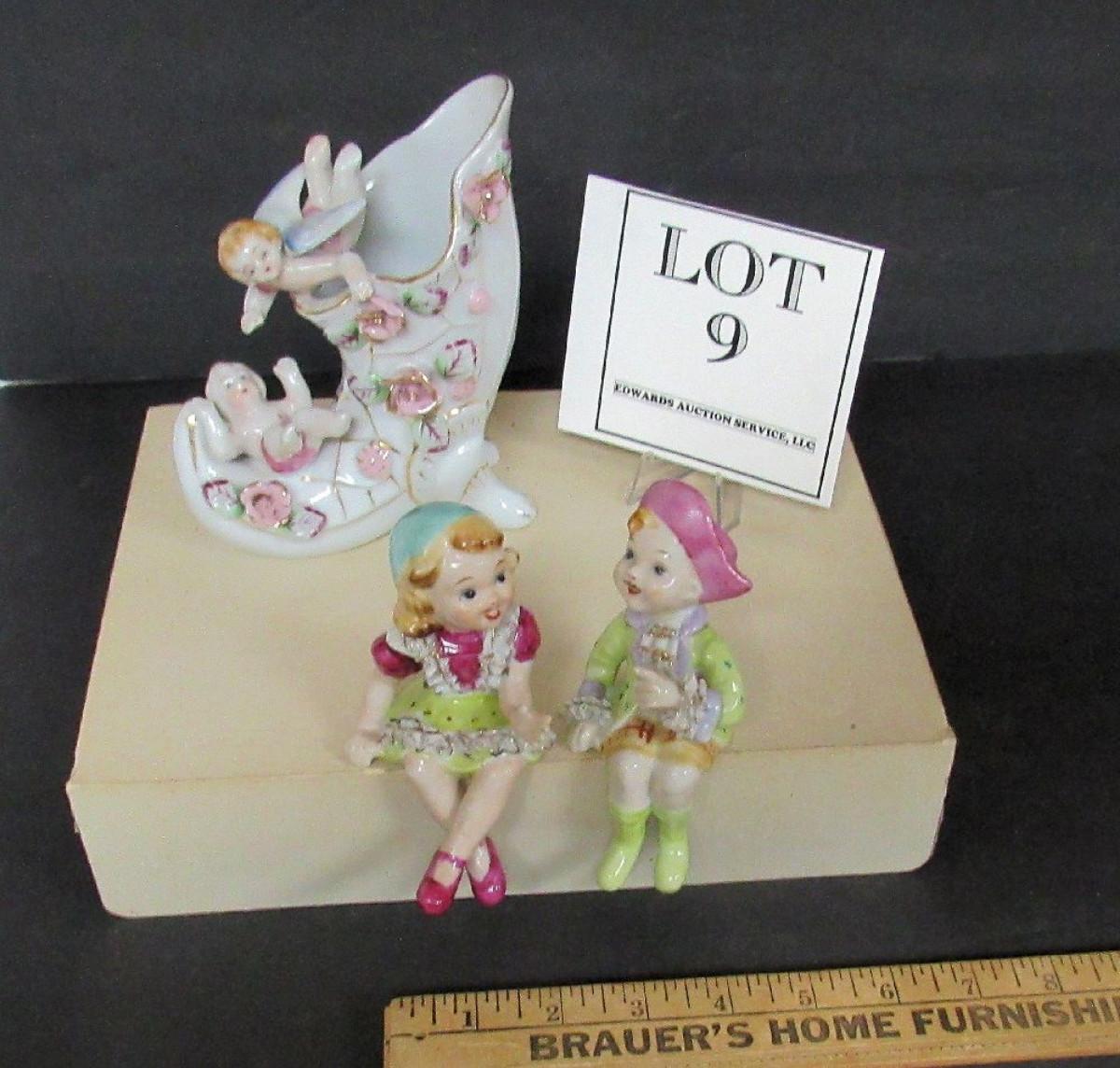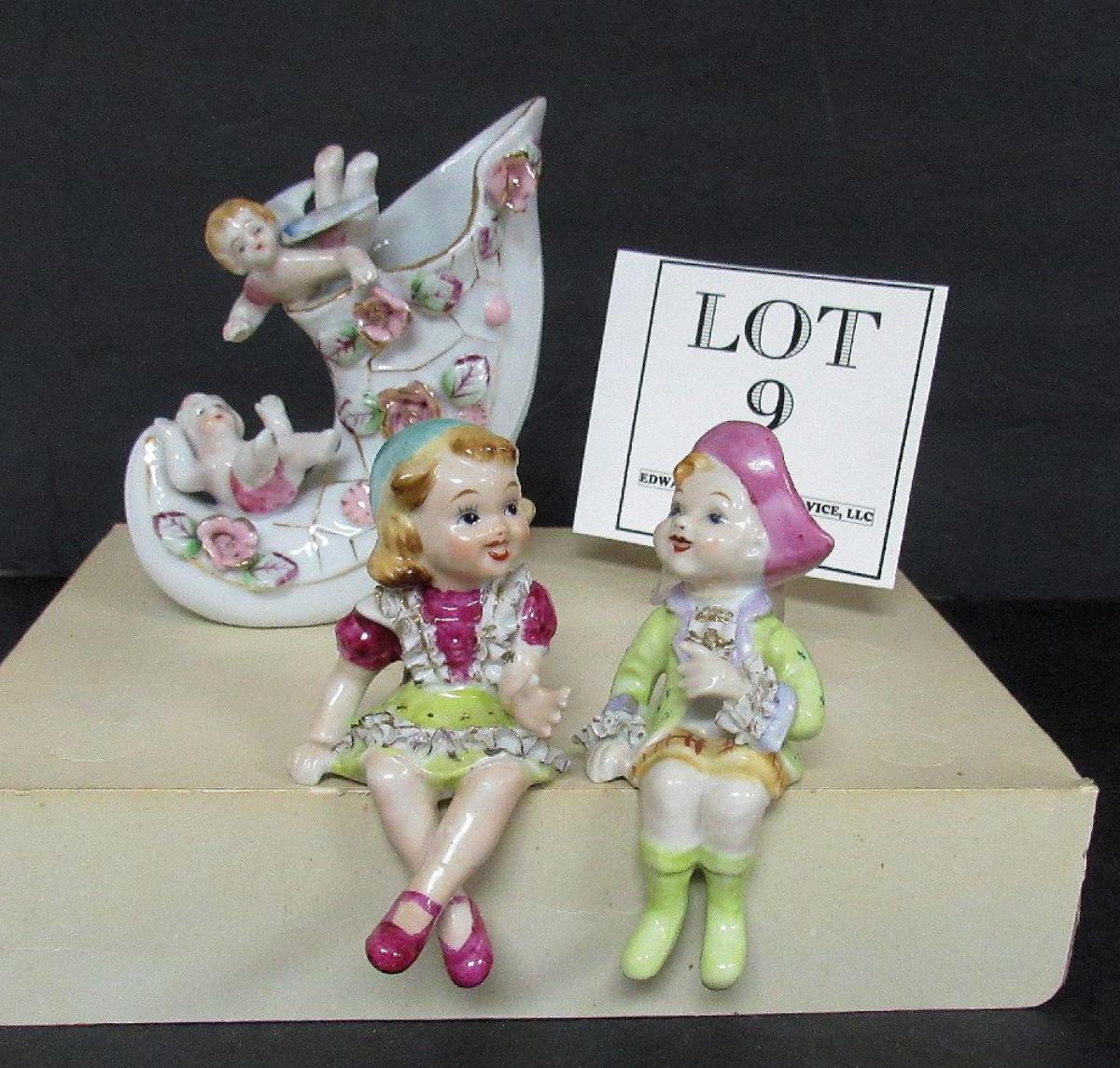 Nice Lot Vintage Fancy Occupied Japan Figurines Shelf Sitters, and Japan Angel Vase
