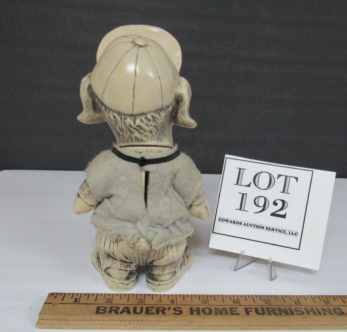 Very nice shape. Original clothes and tag. I think his head comes off to get the money out. Shipping is available at shipping cost plus $5.00 handling fee on one box, $10.00 handling fee on two boxes, $15.00 handling fee on 3 boxes. Helps cover shipping materials and labor cost.