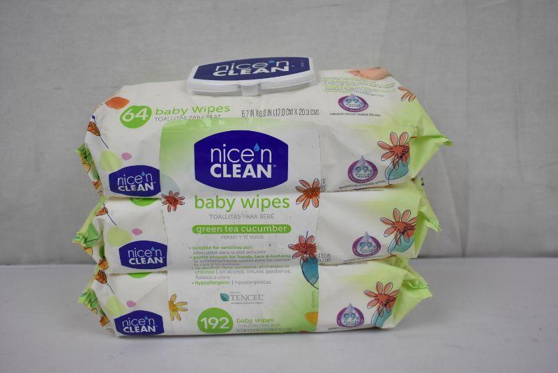 Nice 'n CLEAN Green Tea & Cucumber Baby Wipes - 3 packs of 64 (192 count) - New