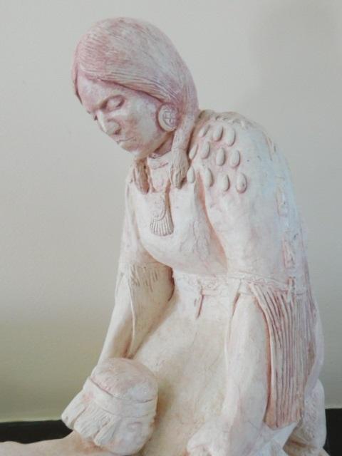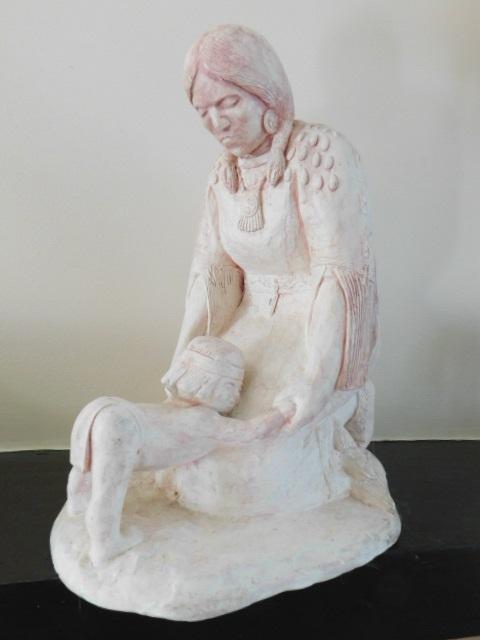 Nice Native American Mother and Child Plaster Statuette 13"x10" back side of item has chips as shown