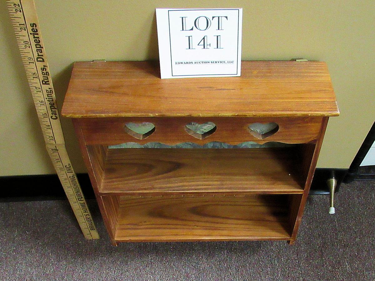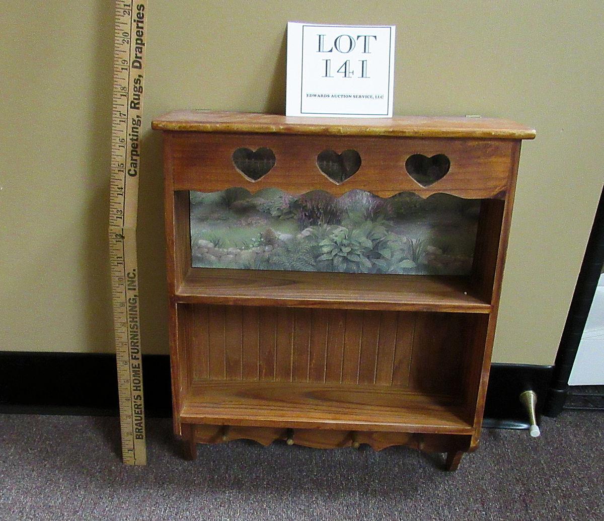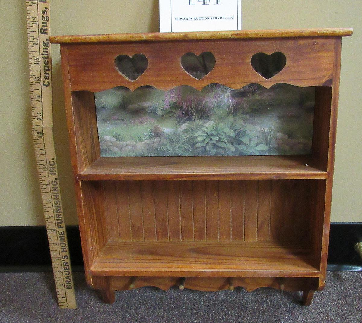 Nice Older Wall Shelf With Key Holder Pegs and Decorated Back, Heart Cutouts