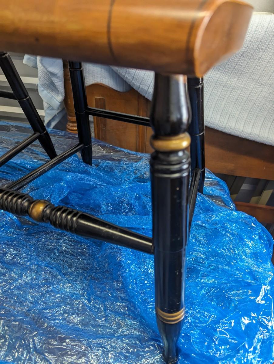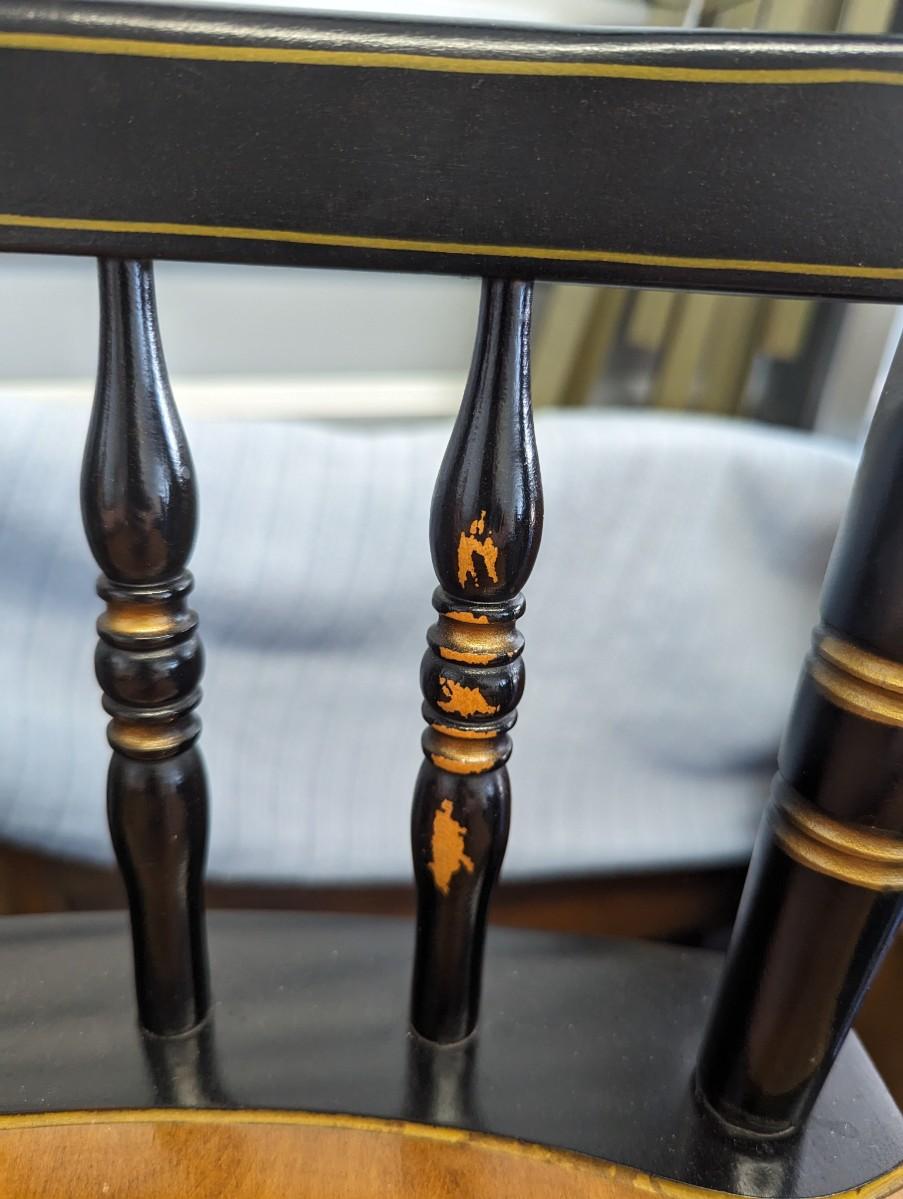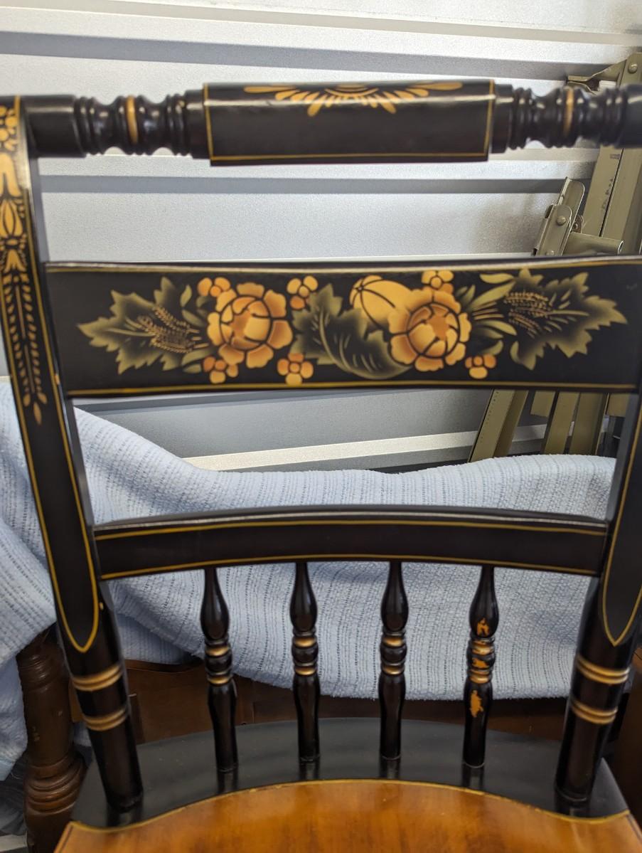 American Folk Style L Hitchcock table with 4 chairs with floral stenciled decoration..