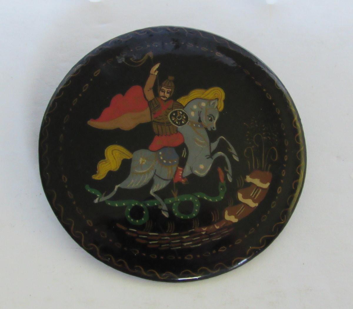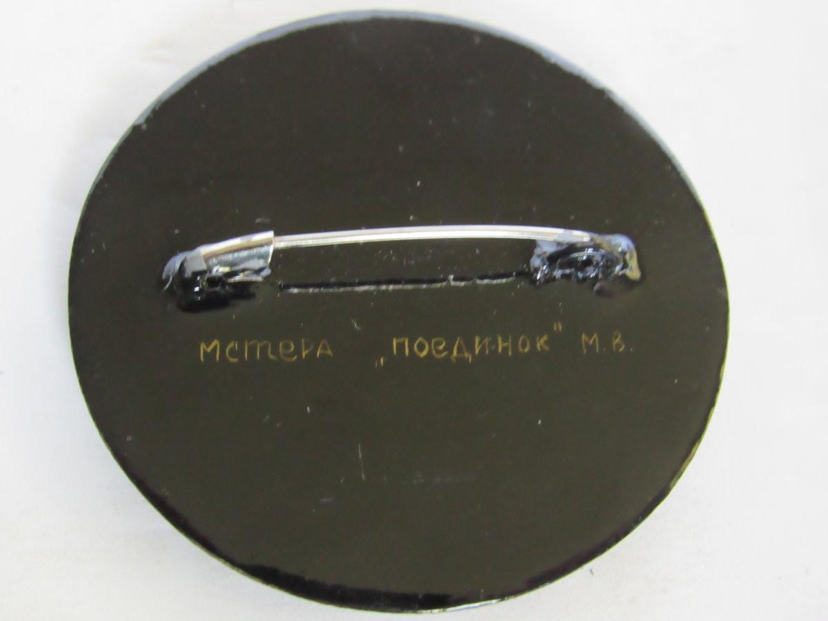 Lot 326: Nice Round Russian Lacquer Pin, Vintage, Signed on Back
