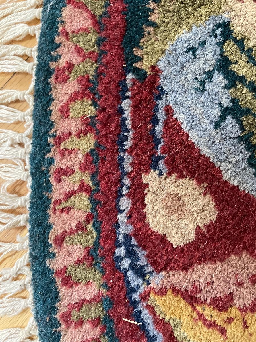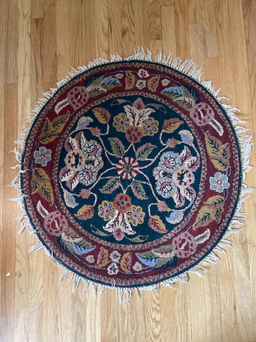 #15 Nice Round Woven Wool Floral Rug w/Fringe