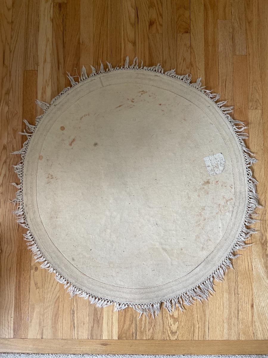Measures 35 1/2” diameter w/o fringe