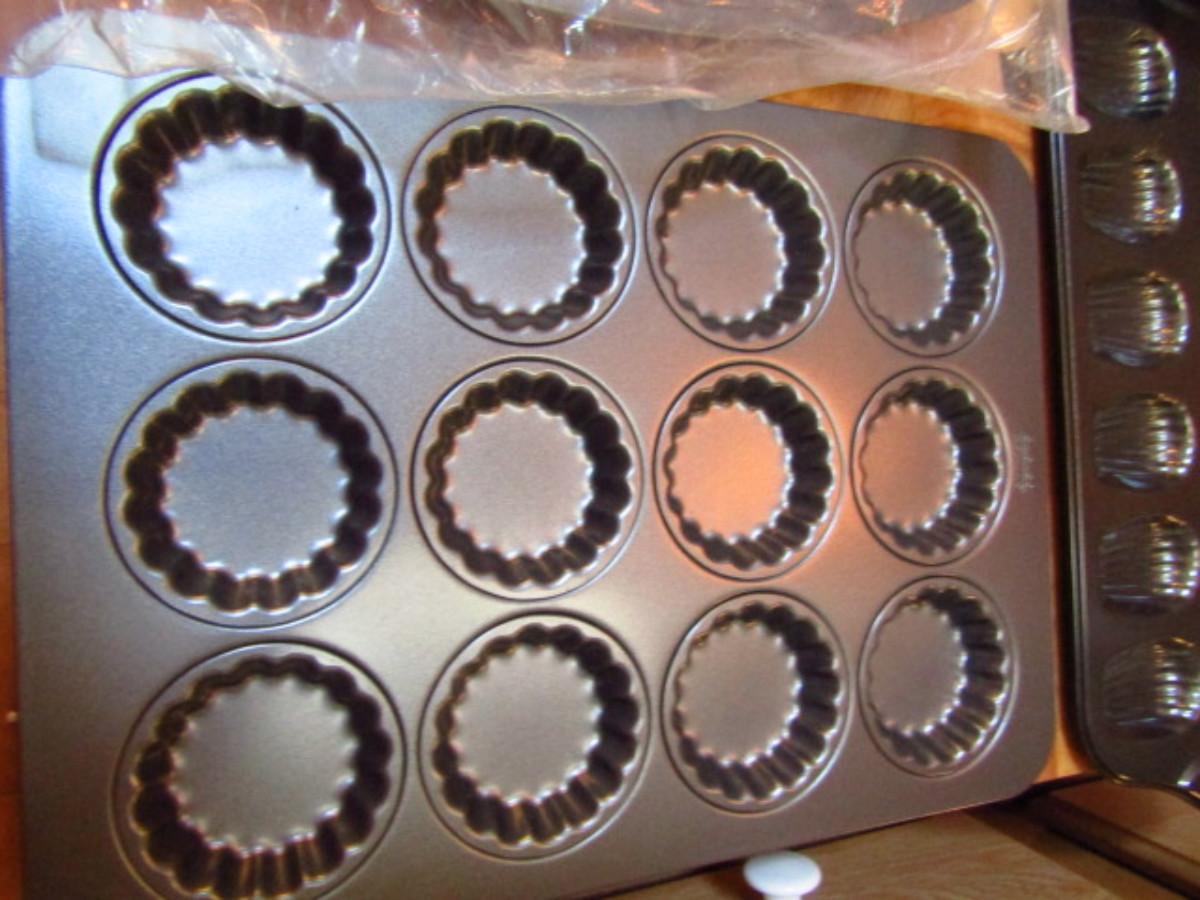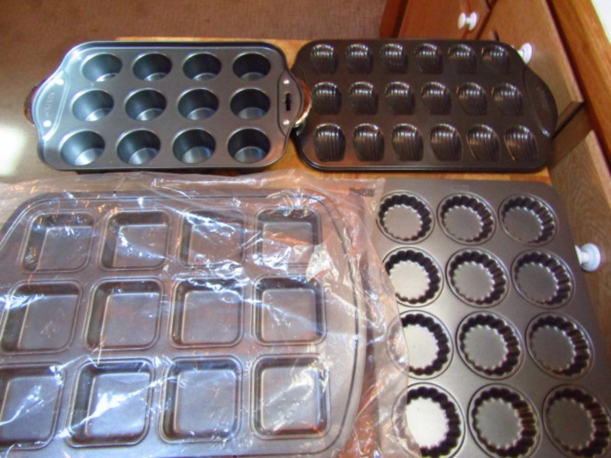 Nice Selection of Specialty Bake Ware- Various Makers. Madeline pan (Norpro), tartlet pan, individual squares pan (Pampered Chef), round pan with removable bottoms (Norpro). All in good condition.