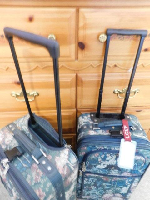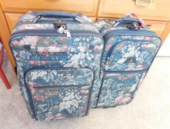 Nice Set of Floral Fabric Atlantic Brand Luggage Bags with Rollers and Adjustable Handles