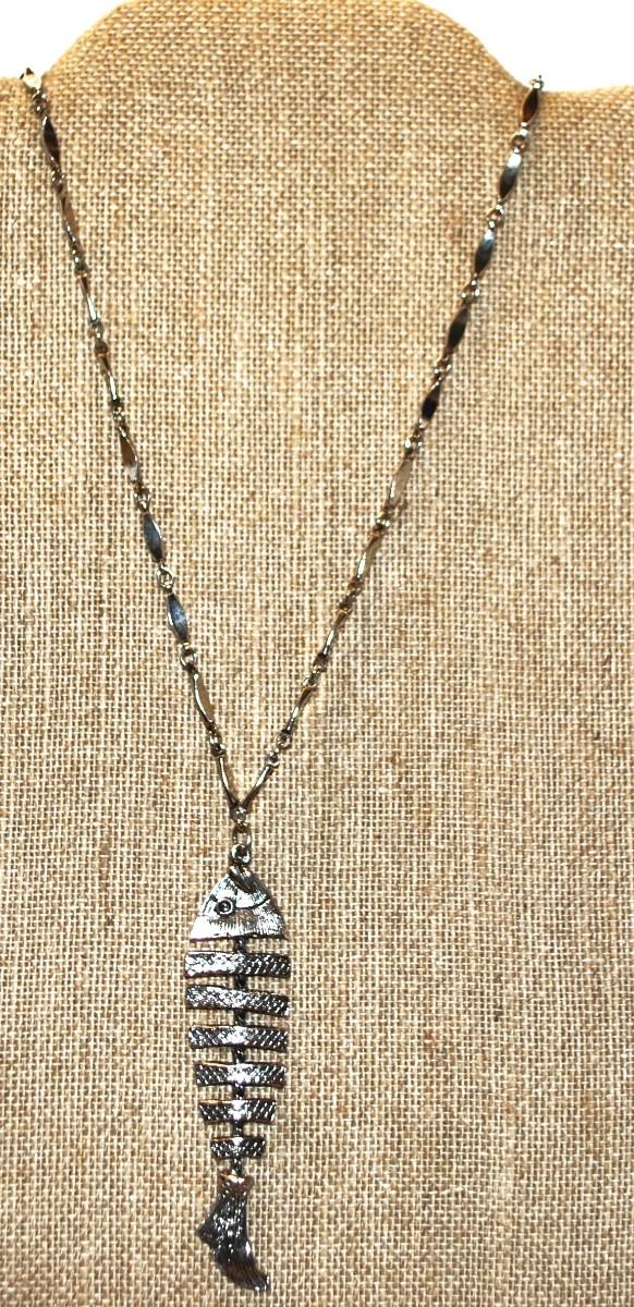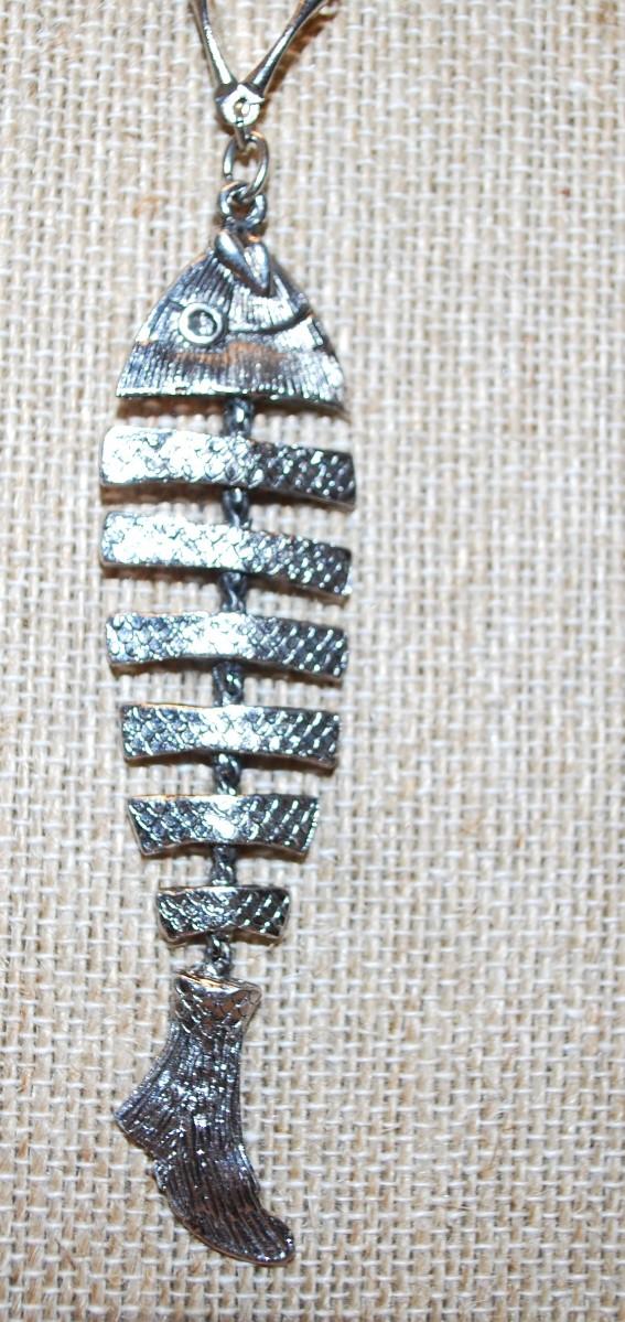 Nice Silver Tone Chain (28" L) with a Split-Piece Silver Fish (3" L ) -- Only ½ Tail