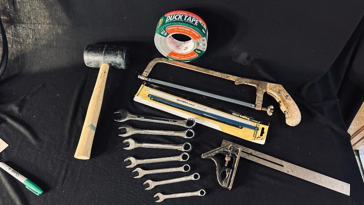 NICE SIZED RUBBER MALLET, SAE END WRENCHES , HACKSAW AND MORE!