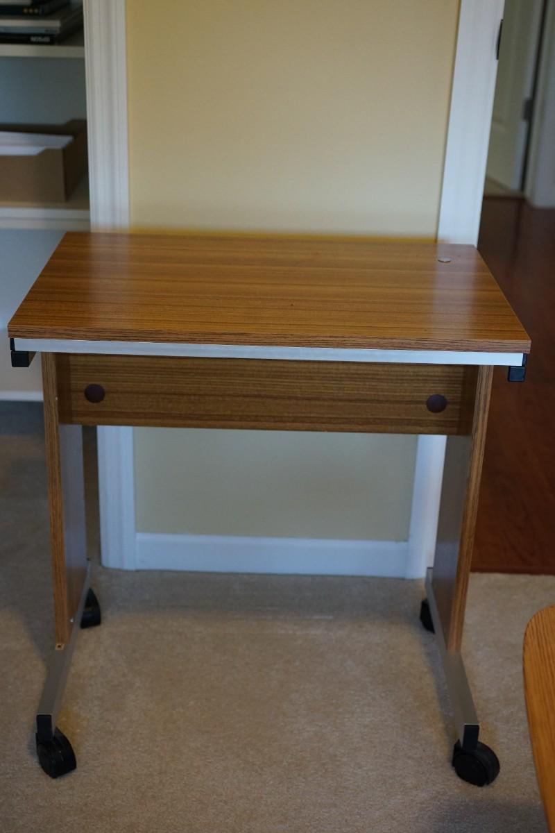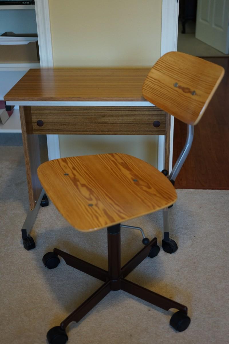 NICE SMALLER OFFICE TABLE FOR PRINTER OR LAPTOP WORK / KEVI JORGEN RASMUSSEN PLYWOOD MCM STYLE ADJUSTABLE CHAIR