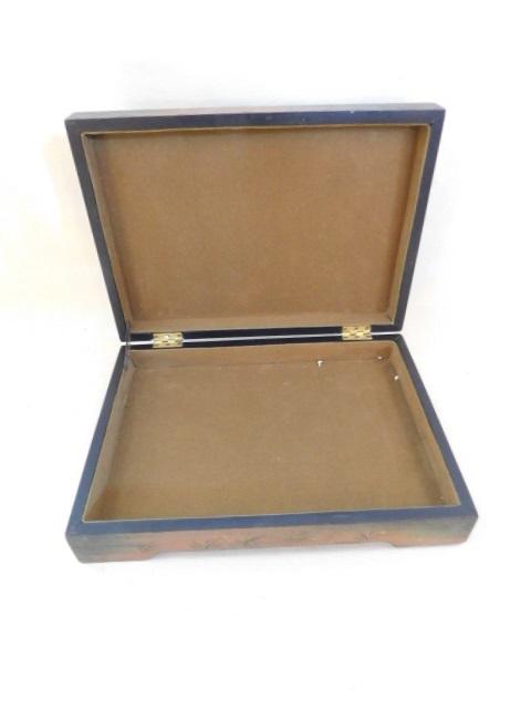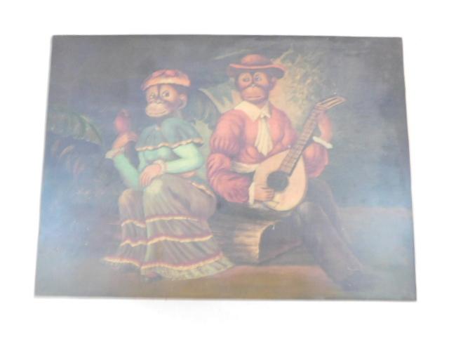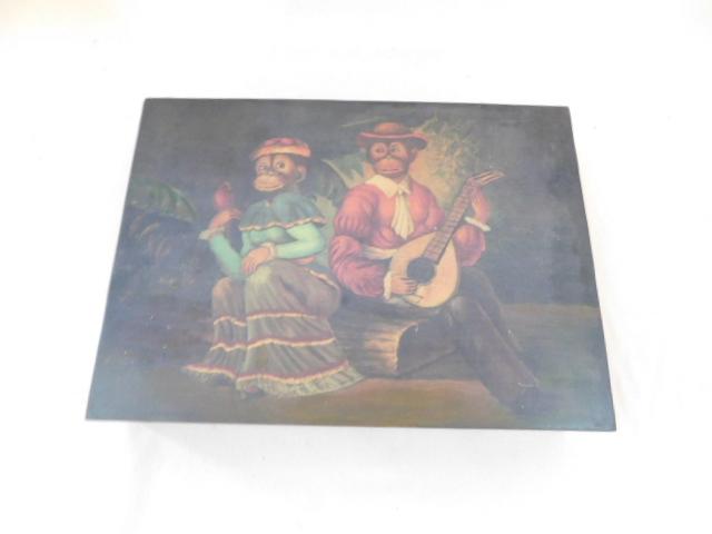 Nice Solid Wood Box with Minstrel Ape Couple on Lid 14"x10"x4"