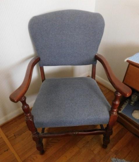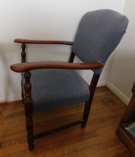 Nice Upholstered Cherry Finish Wood Frame Sitting Chair expect some wear and scratches