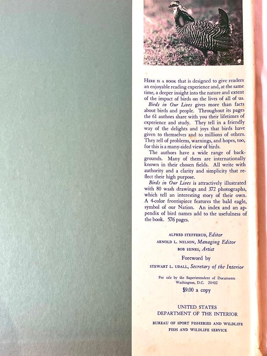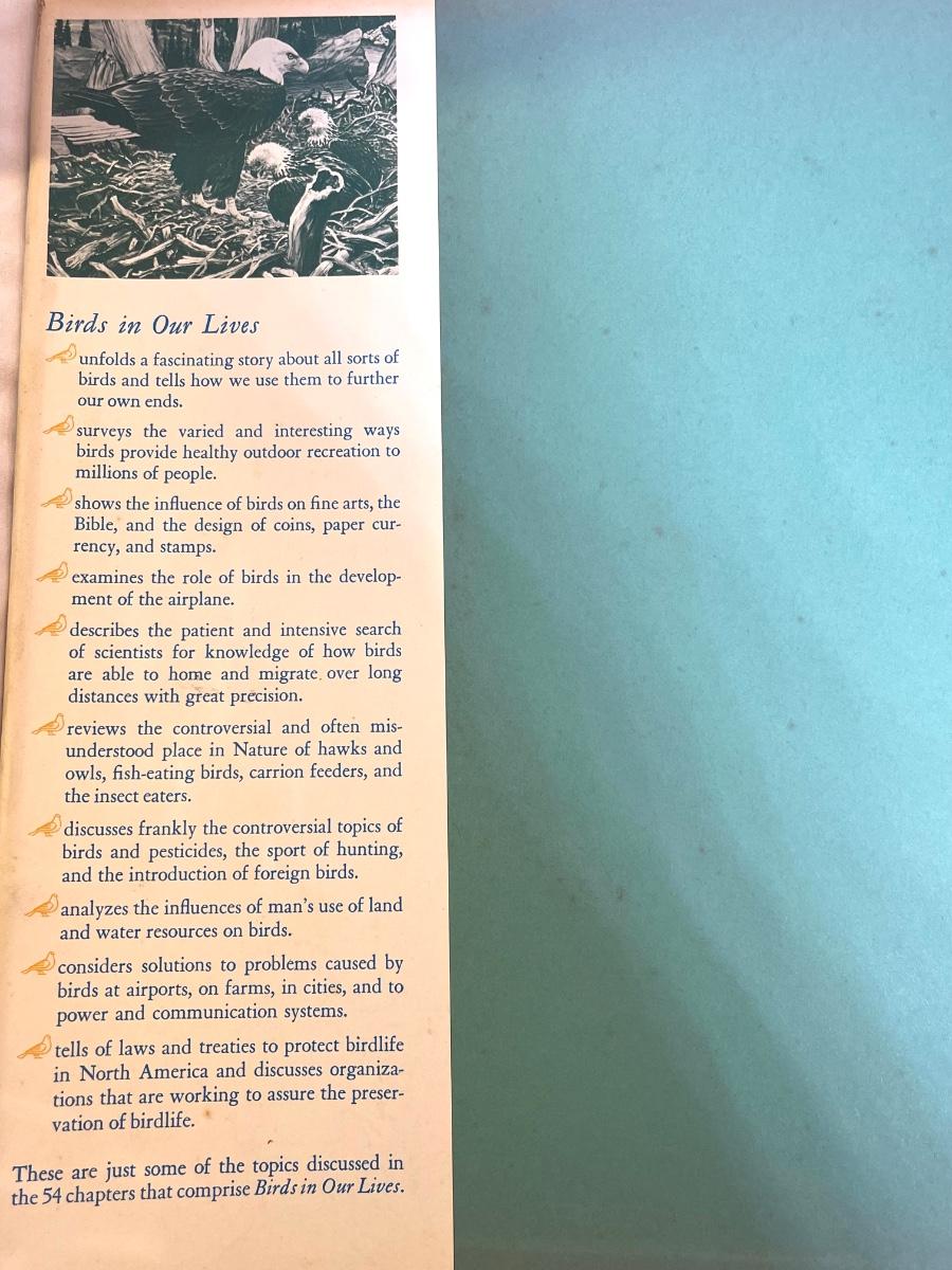 Grab this book for the bird lover in your life. Pictures are great, Subject matter is great. Department of the Interior did a great job with this book. Lovely to add to your birding collection. Book is in good condition. There are signs of age and use. Some yellowing and staining present. Mostly good!
